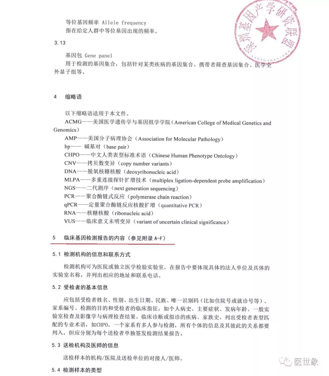2018年12月26日,深圳基因产学研资联盟发布《临床单基因遗传病基因检测报告规范》团体标准,该标准由深圳华大基因股份有限公司、深圳基因产学研资联盟等21家单位,黄尚志、顾卫红、沈亦平、孙洪业、于世辉、朱宝生等55位基因领域 KOL 联名起草。并于2018年12月27日开始实施。 该标准规定了临床单基因遗传病基因检测报告应包含的内容以及要求,适用于第三方医学检验机构、医院或大学诊断实验室等出具的临床单基因遗传病基因检测报告。 《临床单基因遗传病基因检测报告规范》团体标准的具体内容如下:(点击查看高清图片) |