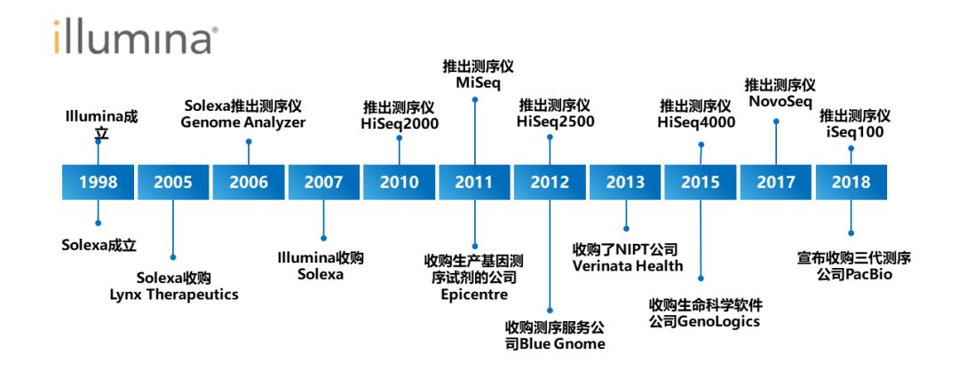 “工欲善其事,必先利其器”,基因测序仪是基因组学研究和产业化的重要工具,2018年国内基因产业上游屡传佳讯,3款基因测序仪陆续获得NMPA认证,本文主要探讨基因测序仪和代表企业的发展历程。 基因行业上游生产平台主要包括基因测序仪、质谱、芯片、图谱和PCR等,特别的,基因测序仪应用最为广泛、技术迭代更快,且近年来得到政策的扶持和批准,基因测序仪的出现大幅降低了基因测序的成本,是实现全基因组测序普惠的关键,其中,二代测序仪主要针对无创产前基因检测(NIPT),三代测序仪广泛应用在遗传病中结构变异(SV)的检测,而动态突变则主要依赖质谱。本文概述了目前市场主流的二代和三代测序仪厂商的仪器发展及特点,供读者参考。 Illumina(ILMN)自2006年收购Solexa后开始进入基因测序领域,陆续又收购了试剂生产、产前诊断和生物信息等企业,拓展业务线迅速发展。公司在快速发展的同时也瞄准了广阔的中国市场,如在NIPT方面与贝瑞基因、安诺优达等企业进行了合作,肿瘤方面与燃石医学等企业合作。 目前全球的二代测序仪市场主要被ILMN占据,而中国已经成为ILMN的全球第二大市场,营收占比近10%,随着MiSeqDX于2018年在国内获批上市,将进一步打开其临床市场。 ILMN测序仪的测序原理为边合成边测序技术,目前推出的测序仪包括小型的低通量测序仪MiniSeq和 MiSeq等,以及用于工业级的用途的大型测序仪HiSeq和NovaSeq等。 ILMN于2014年推出的HiSeq X系统,宣布首次将人类全基因组测序成本降至1000美元以下,而其推出的NovaSeq目标是将测序成本降到100美元以下。目前NovaSeq已为ILMN在2018年带来了10亿美元的收入,带动业绩强劲增长。通过对PacBio收购,填补ILMN部分技术的空白,将会加快其基因组研究和推出更多应用。 后续值得期待是ILMN多元化的综合解决测序生产方案,特别是未来结合Pacbio长读长测序技术,与此同时其终端服务单价受到挑战,软件平台和临床服务是未来突破的关键。 Thermo Fisher(TMO)通过在2014年以136亿美元收购了Life Technologies,奠定了其在基因测序市场第二的位置。TMO在测序仪和基因芯片领域与ILMN直接竞争,而业务范围比ILMN更为广泛,目前主要有四个业务方向:生命科学、分析仪器部、特殊诊断部、实验室产品和服务部。 TMO的2018年财报显示收入的52%来自耗材、26%来自仪器销售。中国地区业务增长最快,销售额约占总的10%。电子显微镜、质谱、色谱及临床测序业务将是TMO 2019年重点发展领域。 TMO测序仪的测序原理为离子半导体测序技术,目前已推出的测序仪包括Ion Proton和Ion S5等小通量测序仪,至今仍未推出用于工业级的用途的大型测序仪。相较于ILMN和华大智造的年年推新,TMO明显未把业务重心放在测序仪板块,其覆盖同样用于基因检测的PCR产品板块也能带来不小收入。 TMO由于集团化运作给其生命科学业务中基因测序板块以稳定的资源,但随着MiSeqDx获批以及未来MGI进入临床,原来的优势正在降低,品牌的差异度不够。 测序仪是基因测序的重要工具,全球市场以往长期被国外大的生产商所垄断。华大基因自2010年购买128台Illumina测序仪开始成为了全世界最大的测序机构,又于2013年收购测序仪公司Complete Genomics(CG)之后开始往上游拓展发力,陆续推出了BGISEQ-500、MGISEQ-2000等自主研发的测序仪。华大智造(华大集团qixia,MGI)于2018年在中国启动测序者计划和“一带一路”人类基因组计划等多个计划,前者旨在协助行业内需要测序数据产出的企业和科研机构实现自主测序平台建设,后者则从国家战略层面,加强了生命科技领域国际创新合作。 华大智造(MGI)作为作为华大集团(BGI Group)qixia测序仪业务子公司,有望在2019年独立上市,而此前在2017年上市的华大基因(BGI Genomics)主要业务则聚焦于无创产前基因检测等服务。 华大智造测序仪的核心技术为DNA纳米球技术,目前已推出目前推出的测序仪包括小型的低通量测序仪BGISEQ-50和MGISEQ-200等,以及用于工业级的用途的大型测序仪MGISEQ-200和MGISEQ-T7等。截止2018年底,华大智造的测序仪全球装机量突破1000台,也预示着国产测序仪已在全球基因测序行业发挥着越来越重要的作用。