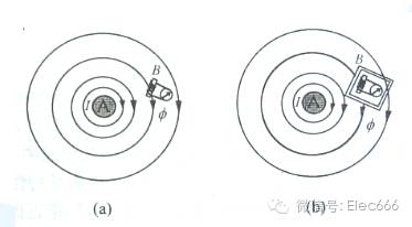 磁屏蔽是用来隔离磁场耦合的措施,在任何载流导线或线圈的周围都存在磁场,如图(a)中,导线A内通有电流I,导线周围存在磁场,用一系列同心圆磁力线表示,为防止该磁场对邻近元件B的干扰,可采用高导磁率的材料将B包围起来,使磁力线聚集于屏蔽体内,从而使敏感元件B得到保护,如图 (b)所示。