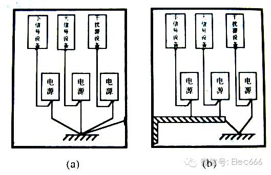 第三类:是干扰源设备地系统,它包括电动机、继电器、接触器等。由于这类元件在工作时产生火花或冲击电流往往对电子电路产生严重的干扰,除了要采取屏蔽隔离技术外,地线必须和电子电路分开设置。