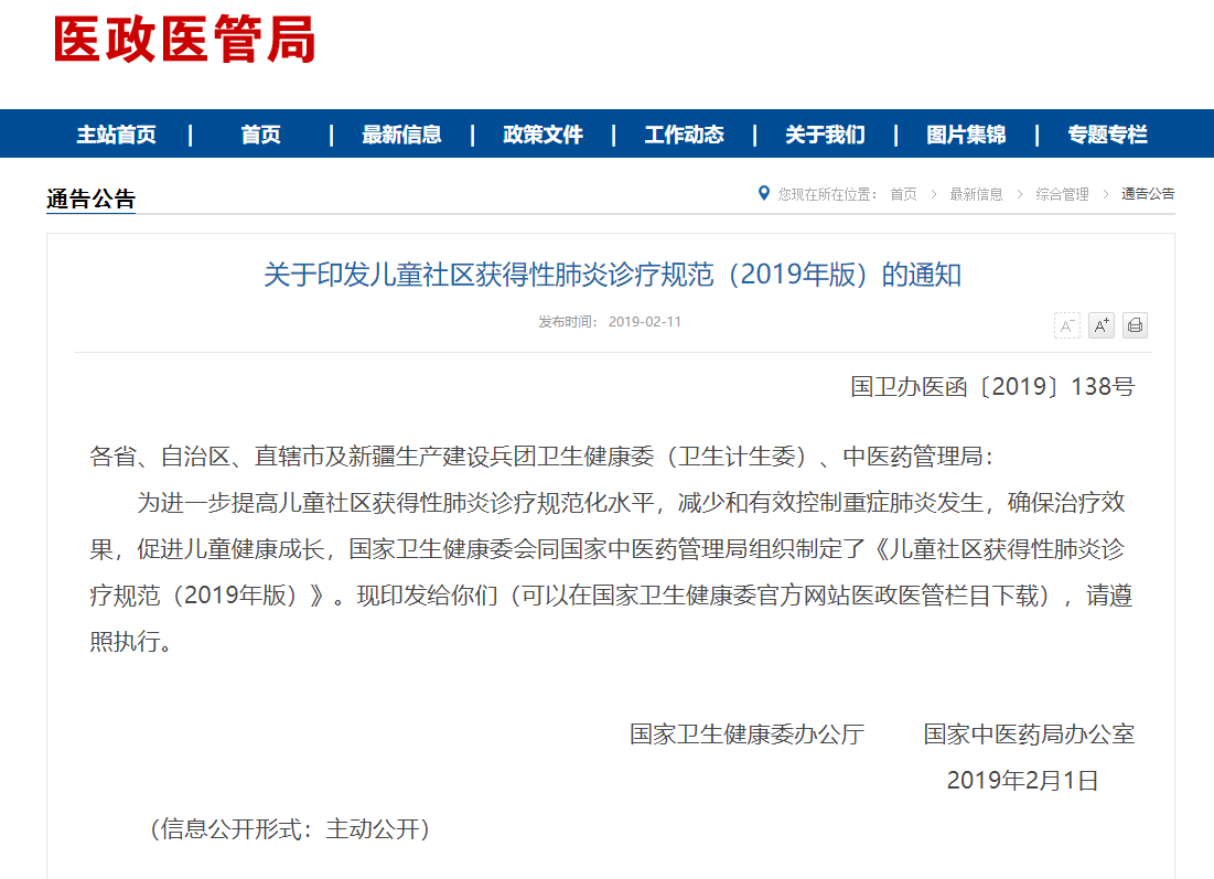 世界卫生组织资料显示,2016年肺炎造成92万5岁以下儿童死亡,其中98%来自发展中国家。肺炎也是当前我国5岁以下儿童死亡的主要原因之一,其中绝大部分儿童肺炎为社区获得性肺炎(Community Acquired Pneumonia ,CAP)。社区获得性肺炎中的重症难治性支原体肺炎和腺病毒肺炎等遗留的气道闭塞,是造成儿童患慢性气道疾病、影响生命质量的重要原因。近年来,我国CAP诊疗水平有了长足进步,但在一些地方、一些医疗机构还存在抗生素应用不尽合理、检查方法选择缺乏针对性等问题。鉴于此,国家卫生健康委、国家中医药局组织各相关学科专家,结合我国国情,制定了《儿童社区获得性肺炎诊疗规范(2019年版)》,进一步提高诊疗规范化水平,重点聚焦重症CAP的诊断和高危因素识别,经验性和目标治疗等,以期降低病死率和后遗症发生率。 一、简介 本规范中CAP的定义是指在医院外(社区)发病的感染性肺炎,包括在医院外(社区)感染了具有明确潜伏期的病原体而在入院后发病的肺炎。CAP为肺实质和(或)肺间质部位的急性感染,引起机体不同程度缺氧和感染症状,通常有发热、咳嗽、呼吸增快、肺部湿性啰音等表现,并有胸部X线片(以下简称胸片)的异常改变。本规范中CAP不包括吸入性以及过敏性等非感染性肺炎。 由于新生儿病原体及临床表现的特殊性,本规范仅针对生后29天到18岁以下儿童的CAP。我国幅员辽阔,地域、经济、文化以及卫生环境等存在较大差异,因此本规范仅为总体原则。 二、主要病原谱和耐药现状 (一)主要病原谱。 1.呼吸道病毒。呼吸道病毒是婴幼儿乃至学龄前期CAP的常见病原。常见的呼吸道病毒包括呼吸道合胞病毒、流感病毒、腺病毒、副流感病毒和鼻病毒等。新发病毒有人类偏肺病毒、博卡病毒、新型冠状病毒、人禽流感病毒等。其他如巨细胞病毒等疱疹类病毒以及肠道病毒等偶可引起CAP。 2.细菌。常见革兰阳性细菌包括:肺炎链球菌(Streptococcus pneumoniae, SP)、金黄色葡萄球菌(Staphylococcus aureus,SA)、A群链球菌(Group A streptococcus,GAS)等;常见革兰阴性细菌包括:流感嗜血杆菌(Haemophilus influenzae,Hi)、卡他莫拉菌(Moraxella catarrhalis,MC)、大肠埃希菌(Escherichia coli,E.coli)、肺炎克雷伯菌(Klebsiella pneumoniae,KP)、铜绿假单胞菌(Pseudomonas aeruginosa)等。其中SP是生后20天至儿童期各年龄段CAP最常见的病原,也是重症肺炎和坏死性肺炎的最常见病原。SA多感染婴幼儿,分甲氧西林敏感金黄色葡萄球菌(Methicillin-sensitive staphylococcus aureus,MSSA)和耐甲氧西林金黄色葡萄球菌(Methicillin- resistant staphylococcus aureus,MRSA),MSSA和MRSA均可引起重症肺炎或坏死性肺炎,我国也有儿童社区获得性MRSA(CA-MRSA)肺炎报道,该菌感染病死率较高。GAS肺炎多为重症肺炎或坏死性肺炎。Hi肺炎多见于5岁以下儿童,MC肺炎多见于婴幼儿,一般不引起重症CAP。E.coli和KP虽不是CAP的常见病原,但可引起重症肺炎,多见于婴儿,或有慢性吸入、先天性心脏病、气道畸形、免疫功能低下、重症病毒感染等基础疾病者。 3.非典型微生物。肺炎支原体(Mycoplasma pneumoniae,MP)不仅是学龄前期和学龄期儿童CAP的常见病原,近年来在1~3岁婴幼儿亦不少见。肺炎衣原体(Chlamydia penumoniae,CP)多见于学龄期和青少年,但在我国肺炎衣原体独立引起的肺炎较少报道。沙眼衣原体(Chlamydia trachomatis)多感染6个月尤其是3个月以内的婴儿。嗜肺军团菌(Legionella pneumophila, LP)虽不常见,但其可能是重症CAP的独立病原或混合病原之一。 4.混合感染。儿童CAP可由混合感染所致,年龄越小,越易发生。 (二)常见细菌耐药情况简介。 1.肺炎链球菌。对不同种类抗菌药物表现出不同程度的耐药。其中,红霉素、克林霉素和四环素的耐药率最高,在90%以上,复方新诺明的耐药超过70%。青霉素耐药的肺炎链球菌(Penicillin-resistant Streptococcus pneumonia, PRSP) 低于10%(非脑膜炎青霉素注射标准),青霉素中介的肺炎链球菌(Penicillin-intermediate Streptococcus pneumonia, PISP)高于20%,在某些医院对头孢菌素类和美罗培南的耐药率高于青霉素。对氟喹诺酮类药物敏感率超过98%,未发现对万古霉素和利奈唑胺耐药的菌株。 2.金黄色葡萄球菌。对青霉素的耐药率高于90%,对**拉宁、万古霉素和利奈唑胺100%敏感。MRSA的分离率在逐年上升,目前总体接近30%。 3.流感嗜血杆菌。氨苄西林耐药率高达60%以上,其中产β-内酰胺酶菌株超过90%。对头孢克洛的不敏感率高于头孢呋辛,阿莫西林/克拉维酸或氨苄西林/舒巴坦敏感率高,头孢曲松和美罗培南100%敏感。对β-内酰胺类以外的抗菌药物如复方新诺明耐药率最高,阿奇霉素的耐药菌株在不断增多,已超过30%。 4.大肠埃希菌和肺炎克雷伯菌。对头孢曲松和头孢噻肟的耐药率高于头孢他啶。目前耐亚胺培南和/或美罗培南的大肠埃希菌和肺炎克雷伯菌在逐年增多,肺炎克雷伯菌对碳青霉烯类抗生素的耐药性明显高于大肠埃希菌。耐药性最低的是阿米卡星,其次为氟喹诺酮类药物。 三、诊治思路 (一)确定是否为感染性肺炎。在诊断感染性肺炎之前以及治疗反应不佳时,需要除外非感染性肺部疾病和气道疾病等。 (二)判断病情轻重和重症高危因素。重症肺炎病死率高,应在首诊和整个治疗过程中动态评估病情轻重和重症高危因素,以及时优先处理重症病例。 (三)经验性治疗。初始合理的经验性治疗对于降低病死率和减少后遗症的发生至关重要,应根据年龄、发病季节