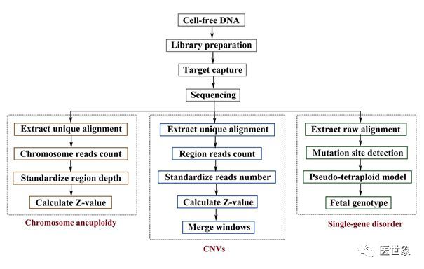 常规检测中,若想筛查出胎儿是否伴有13/18/21-三体综合征、致病CNVs(染色体微缺失/微重复综合征)、单基因病等三种异常,是需要三个独立的检测实验完成,这就意味着孕妇及其家庭将面临着高昂费用,同时还有漫长的时间等待。 是否有一种技术可以同时对上述三种异常问题进行检测呢? 安诺优达基因科技联合浙江大学医学院附属妇产科医院、南方医科大学南方医院等机构,采用目标区域捕获及创新性的一体化生信分析方法,在研究染色体非整倍性疾病、染色体微缺失/微重复综合征和单基因遗传病的三合一无创产前DNA检测技术方面,取得了令人满意的成果。研究相关成果在线发表于Molecular Genetics & Genomic Medicine。 研究人员设计了涵盖8,731个区域的panel,其中8,171个等长区域在常染色体和性染色体上均匀分布,其余560个非等长区域覆盖在β-地中海贫血、非综合性耳聋和苯丙酮尿症常见突变位点区域。 染色体非整倍性和致病CNVs的生信分析保留了传统的Z值计算方法,而对于常染色体隐性遗传单基因病的检测创新性采用安诺优达独立自主研发的假四倍体模型分析方法(专利申请号 201611270836.9)联合进行胎儿基因型的预测。 结果表明,本研究所采用的创新性检测方法对非整倍性和致病CNVs的检出率均为100%,对三种常染色体隐性遗传病的准确率可达86.4%。初步验证了NIPT技术可同时实现对染色体非整倍性、染色体微缺失/微重复综合征及单基因遗传病的检测,为未来临床中开发新型经济、快速且多功能的产前检测提供了重要依据。 关于假四倍体模型分析方法 假四倍体模型分析方法是安诺优达技术团队自主研发,指孕妇外周血中母亲+胎儿混合的基因型,称之为“假四倍体”,可能存在的基因型AAAA、AAAB、ABAA、ABAB、ABBB、BBAB、BBBB(A、B分别代表母体和子代的野生型、突变型),这几种基因型与胎儿浓度分别存在对应关系。研究人员通过最大似然估计,不断的迭代出胎儿的最优浓度。利用贝叶斯模型得到每个位点最优基因型,利用基因型与胎儿浓度的对应关系估算出最准确的胎儿浓度,不断的迭代直到前后两次浓度之差小于0.001,从而得到对应的胎儿基因型。 2018年8月,国家卫健委组织制定并发布了《全国出生缺陷综合防治方案》。方案要求,到2022年,全面提高国民出生缺陷防治知识普及和优生优育健康筛查工作。安诺优达作为国家发改委首批基因检测技术应用示范中心,已开发出一整套贯穿生殖生育全周期的筛查、检测方案,助力我国出生缺陷综合防治工作。作为中国领先的NIPT服务商,安诺优达也长期致力于生殖生育领域的技术创新与研发工作。 2017年12月,国家卫生计生委科学技术研究所、安诺优达与全国近30家应用研究中心联合开展“NIPT准确性干扰因素研究”(课题编号:2016YFC1000307-12),对影响NIPT结果准确性的因素进行综合分析,为NIPT的临床应用奠定基础,建立中国的NIPT专家共识。 |
