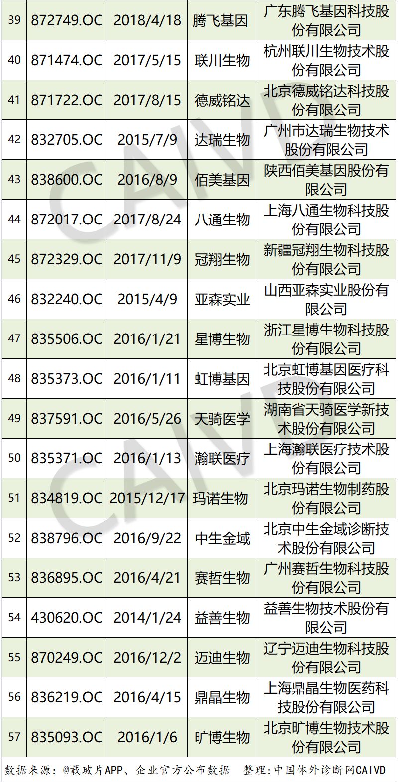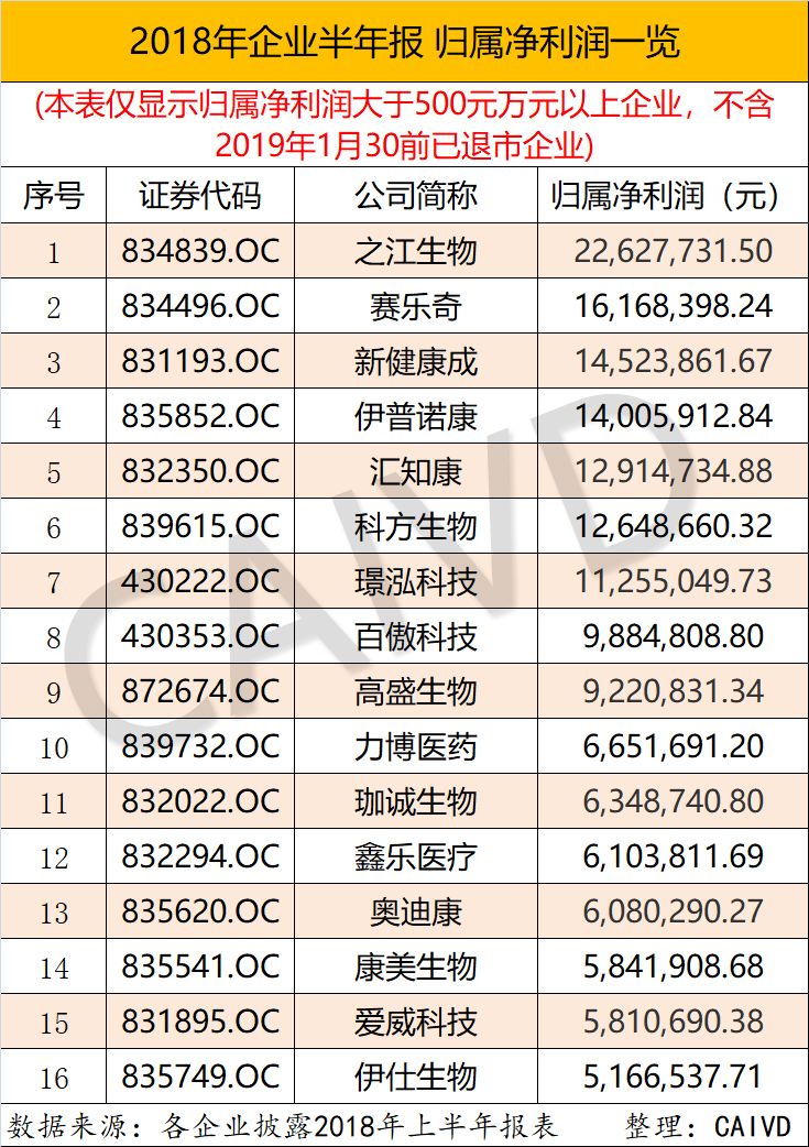 三、16家净利润高于500万的IVD企业半年报的一览 2018年上半年,归属净利润高于500万的企业有16家,之江生物以2262千万位列第一,该公司目前是国内分子诊断试剂生产的龙头企业之一。赛乐奇以1616千万位列第二,新健康成以1452万元位列第三,其他13家企业分别是之伊普诺康、汇知康、科方生物、璟泓科技、百傲科技、高盛生物、力博医药、珈诚生物、鑫乐医疗、奥迪康、 康美生物、 爱威科技、 伊仕生物。 四、企业成立时间及联系方式 新三板市场生命力旺盛,随着政策支持和监管完善,已成为IVD高成长企业实现定向融资、股份转让增值、并购重组、直接转板的孵化器。而创科板的出现,为科技型、创新型IVD企业带来了更多希望。2019年,让我们一起见证IVD企业的成长之路!期待更多的IVD龙头企业诞生! 声明:以上罗列的企业且并未涵盖新三板IVD所有企业。欢迎补充与指正。 |