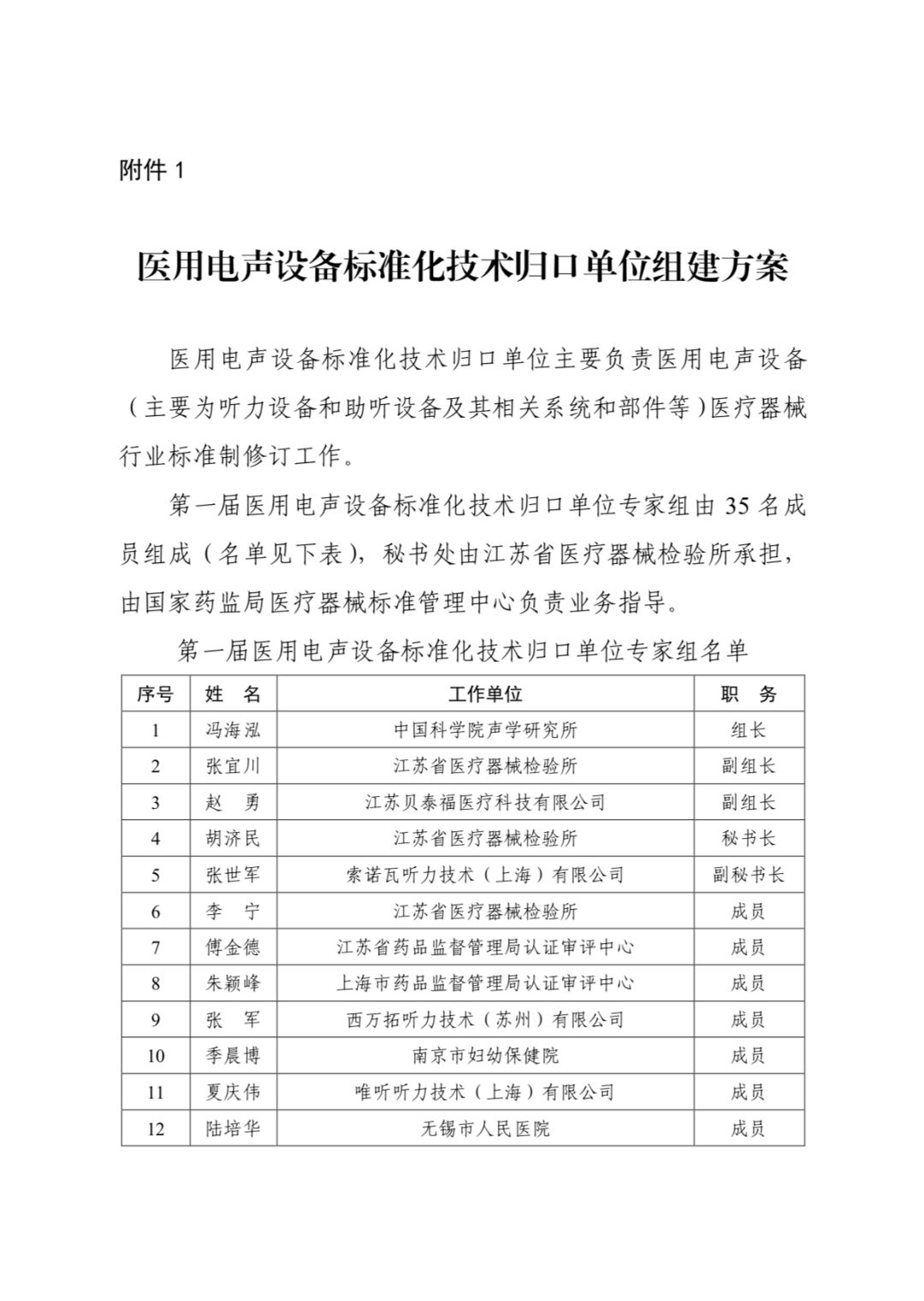 为适应医疗器械产业发展需求,结合监管工作实际,经研究,国家药监局拟成立全国医用电声设备等3个医疗器械标准化技术归口单位(组建方案见附件),现予以公示。公示期间,如对医疗器械标准化技术归口单位组建方案有异议,请向国家药监局器械注册司反馈。