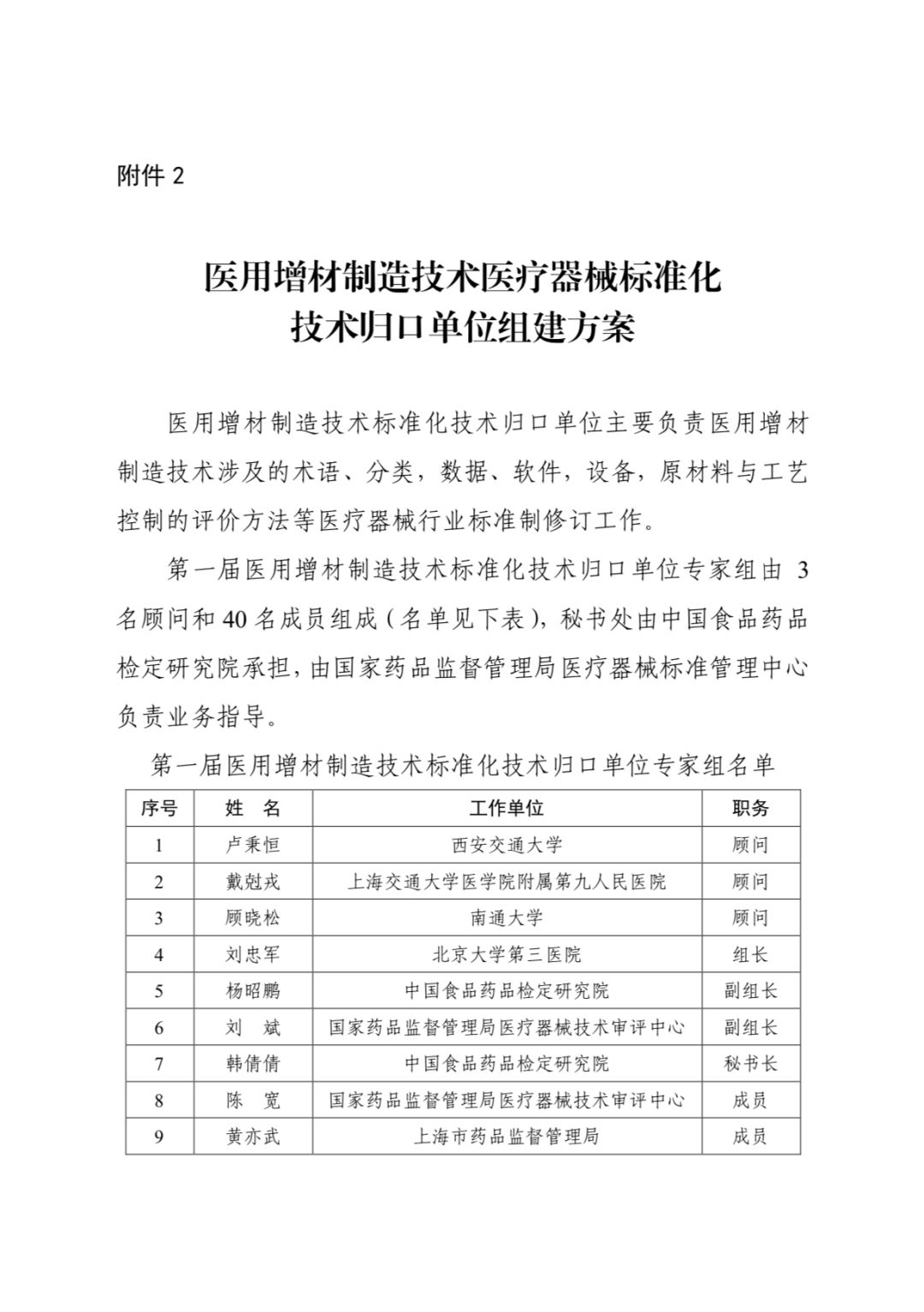 2、医用增材制造技术医疗器械标准化技术归口单位组建方案