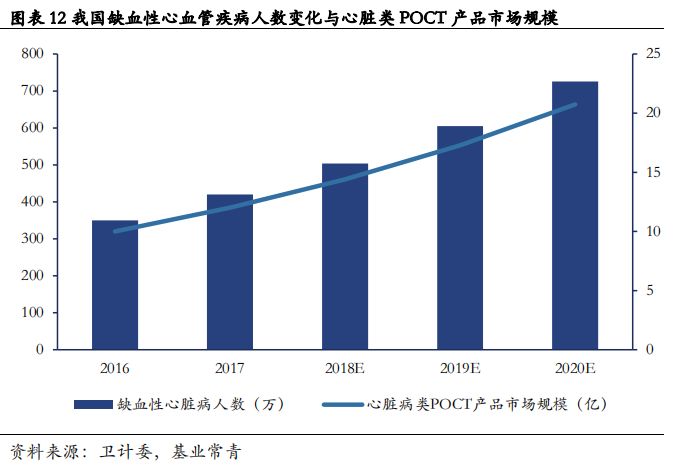 前言: 心血管病(cardiovascular disease,CVD)的危险因素有很多:高血压﹑血脂异常﹑糖尿病﹑肥胖、吸烟……在社会老龄化和不健康生活方式盛行的背景下,中国CVD患病率和死亡率的不断上升,并呈现在低龄化、低收入群体中快速增长趋势及个体聚集现象。 根据《中国心血管病报告2017》数据显示,目前我国心血管患病人数已经达到2.9亿,其中脑卒中1300万,冠状动脉粥样硬化性心脏病(冠心病)1100万。2015年城乡居民疾病死亡构成比中CVD占首位,高于肿瘤及其他疾病。2015年,农村、城市CVD死亡占全部死因的比例分别为45.01%和42.61%,即每5例死亡患者中有2例死于CVD。 除临床症状和体征外,心血管疾病的诊断指标主要靠医学检验技术,特别是近年来发展较快的各类标志物的检验技术。尽管在心脏病的检查技术还有超声心动图、核素心血管造影、CT、MRI等,但这些检查价格昂贵,不适于动态监测,而且血液生化检查对心脏病尤其是冠心病的诊疗可提供重要的依据。另外,由于心血管病存在分布范围广、农村患病数量高于城市、发病急、抢救时间要求高、需要持续监测等特点,对快速检测和精准治疗也提出了较高的要求。 小编认为,心血管疾病是IVD重要的应用场景,尤其是心脏标识物的POCT检测﹑心血管病药物基因组学﹑心血管患者基因图谱研究这些领域有巨大的发展空间,并能为广大患者带来福音。目前有哪些值得关注的创新技术和公司呢?小编与大家一起来了解。 一、心脑血管疾病与标志物 1. 心血管疾病 心血管疾病是一系列涉及循环系统的疾病。循环系统是人体内运送血液的器官和组织,主要包括心脏、血管(动脉、静脉、微血管)。心血管疾病可以细分为急性和慢性,一般都与动脉硬化有关,并有着相似的病因、病发过程及治疗方法。 2. 心血管疾病的标志物 心血管病标志物大致可分为三类:一类是主要反映心肌组织损伤的标志物;第二类上是了解心脏功能的标志物;第三类是作为心血管炎症疾病的标志物。 肌酸激酶(CK),肌酸激酶同工酶(CK-MB),肌红蛋白(Mb/Myo),心肌肌钙蛋白(cTn)等。这些标志物在正常情况下存在于心肌细胞中,心肌梗死发生后释放入血,若在血中发现这些物质水平升高则表明有心肌损伤存在。心肌肌钙蛋白(cTn)是目前临床敏感性和特异性最好的心肌损伤标志物,已成为心肌组织损伤(如心肌梗死)最重要的诊断依据。相对cTn而言,CK、CK-MB和Mb等对心脏疾病诊断的特异性稍差一些。 心型脂肪酸结合蛋白(hFABP)是心肌损伤最早的标志物,心肌缺血性损伤出现后,hFABP可以早在胸痛发作后1-3小时在血液中被发现,6-8小时达到峰值而且血浆水平在24-30小时内恢复正常。 A型利钠肽 (A-type natriuretie peptide,ANP)和B型利钠肽(B-type natriuretie peptide,BNP) 分别由心房和心室分泌,是目前重要的了解心脏功能的标志物。BNP具有重要的病理生理学意义,它可以促进排钠、排尿,具较强的舒张血管作用,可对抗肾素-血管紧张素-醛固酮系统(RAAS)的缩血管作用。可溶性生长刺激表达基因2蛋白(sST2)作为一种能同时反映炎症、纤维化及心肌牵张力的新型生物标志物,可对心衰患者进行危险分层、预后评估及个体化治疗。 肾上腺髓质素(Adrenomedullin,ADM)是一种肽类激素,具有舒张因子作用,在微循环和内皮障碍时扮演重要角色。肾上腺髓质中段肽原(MR-proADM)是内皮障碍时反映ADM释放的一种稳定的替代标志物,因此,国外有学者认为MR-proADM作为一种新型的反映血管状态的生物标志物,比NT-proBNP能更好地预测死亡,可以帮助区分那些需要强化治疗的极高危慢性心衰(CHF)患者。 CRP是动脉粥样硬化、血栓形成疾病的介导和标志物。而同型半胱氨酸(Hcy)的代谢异常导至的Hcy血症也是动脉粥样硬化和血栓形成等心脑血管疾病发病的独立危险因素,故测定Hcy水平也已成为患心脑血管疾病的预测指标之一。 脂蛋白相关磷脂酶A2(lipoprotein-associated phospholipase A2,Lp-PLA2)是具有血管特异性的炎症标志物,研究发现Lp-PLA2为冠心病和缺血性卒中的独立危险因素。新近美国FDA批准其用于预测冠心病和缺血性卒中风险。 D-二聚体是血液中纤维蛋白单体(fibrinmonomer)经活化因子xIII交联后,再经活化的纤溶酶水解产生特异的降解产物中的一种。D-二聚体是最简单的纤维蛋白降解产物,其质量浓度的增加反映体内高凝状态和继发性纤溶亢进。在临床应用中,D-二聚体是一个阴性预期值指标,临床使用可分为两大部分: ① 与静脉血栓栓塞症相关的疾病如肺栓塞、深静脉血栓形成、脑静脉血栓症。 ② 非静脉血栓栓塞症如急性主动脉夹层、脑卒中、弥漫性血管内凝血、脓毒症、急性冠脉综合征、慢性阻塞性肺病等。 二、心血管病标志物POCT 产品市场分析 心脏病分为缺血性和非缺血性,缺血性心脏病一般会引起心肌损伤,因此需要通过检测心肌标记物来确诊,达到良好的预后效果。其中心肌梗塞发病凶险,黄金救治时间是病发后 1 个小时内。根据国家卫计委公布数据来看,2016年缺血性心脏病出院人数约为350万人;按照统计数据分析,假设缺血性心脏病出院人数将每年保持约20%增速,到2020年出院人数有望到达726万人。 在2016年POCT心脏病产品市场规模约为10亿元,按照中性估计,POCT心脏病产品市场规模按患病人数同比例增加,2020年市场规模有望达到21亿元。目前,专注于心脏标志物即时检测和解决方案的国内厂家除了POCT的三大龙头企业-基蛋生物