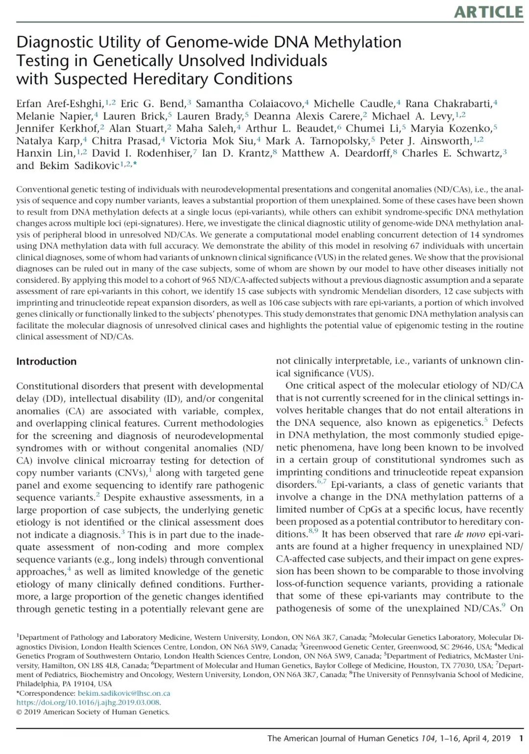 目前的基因检测方法在诊断儿童发育迟缓、智力障碍或先天性异常方面常常存在不足。有些时候,某些基因变异在技术上非常难以检测;其他时候,检测结果中显示的基因突变,临床医生则根本不清楚如何解释,不清楚这些突变是否具有致病性,因此就不可能说它们是否与某种疾病有关。 4月2日, 加拿大Greenwood遗传中心与伦敦健康科学中心合作,宣布即将在4月8日推出一款基于Illumina MethylationEPIC的表观遗传学诊断产品 —— EpiSign。这款新的临床检测产品从血液样本中识别疾病特异性甲基化特征,能够对那些基因检测无法诊断的神经发育障碍作出诊断,并有望取代目前针对印迹基因疾病的靶标检测。 picture via Greenwood Genetic Center EpiSign产品是采用Illumina Infinium MethylationEPIC 850K甲基化芯片技术,通过开发的计算模型阐释甲基化芯片的数据,并能对相关遗传性疾病的特定甲基化特征进行识别。随着其他疾病的甲基化数据的收集,该款产品可诊断的疾病数量还在陆续增加。 Bekim Sadikovic 分子诊断学、病理学及检验医学系主管 加拿大安大略省伦敦西部大学 “目前,如基因芯片和全外显子测序这样常规诊断技术,难以对非编码基因和其他复杂变异进行评估,也不能提供有关表观遗传学变化的信息,而基于甲基化芯片技术的EpiSign提供分析的层次早已超出基因组学水平。” Mike Friez, PhD Greenwood 诊断实验室主管 加拿大 Greenwood 遗传中心 “这项技术的优势,在于对那些临床意义尚不清楚的患者进行诊断,其中一些患者是由于没有明确的疾病表型特征,而另一些患者的相关基因可能存在意义不明的变异。” 研究背景介绍 3月28日,一个由加拿大和美国科学家组成的团队开发了一种基于MethylationEPIC DNA甲基化芯片的计算方法,可以根据患者的表观遗传特征诊断14种罕见的遗传性疾病。他们在The American Journal of Human Genetics上报告了他们的发现。研究人员希望,该方法能有助于更多罕见的遗传疾病患者得到临床诊断。 Greenwood 诊断实验室已定于4月8日开始,正式接受患者预定和样本送检。目前提供两种数据分析方式,以满足您的病人的需要。 EpiSign 一次检测 两种选择 EpiSign Complete EpiSign Variant 19种家族遗传性疾病 综合分析 患者的甲基化数据 针对性回顾 报告周期:4周 费用 $1500 费用 $1200 检测方法:MethylationEPIC Array 样本要求:4-6ml 外周血 EDTA抗凝管保存 发育迟缓、印记基因疾病 临床意义不明变异 适应诊断疾病: 常染色体显性小脑共济失调-耳聋-嗜睡综合症 α地中海贫血伴发X连锁智力发育不全 ADNP相关疾病 侏儒-指甲发育不全综合症 Cornelia de Lange 综合症 CHARGE 综合症 Claes-Jensen 综合症 Floating Harbor 综合症 生殖器-髌骨综合症 歌舞伎综合症 儿童期巨脑畸形综合征 Angelman 综合症 智力残疾-稀毛-短指综合症 帕-魏二氏综合症 脐膨出-巨舌-巨大畸形 Russell-Silver 侏儒症 脆性X染色体综合症 脑-额-面部综合症3型 唐氏综合症 7q11.23 微重复综合症 威廉斯综合症 该研究负责人Bekim Sadikovic及其团队已将EpiSign检测授权给两个欧盟和美国诊断实验室,并计划在下周4月4日举行的美国医学遗传学学院(American College of Medical Genetics)年会上对该产品的最新进展作以详细介绍,4月8日正式开始接受患者样本送测。 |