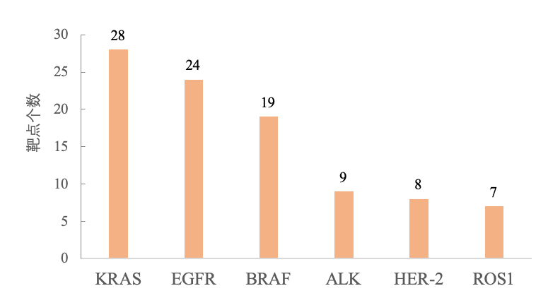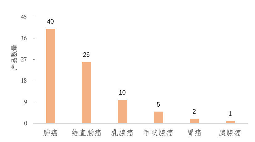 图7 我国基于基因检测的肿瘤诊断产品检测靶点统计