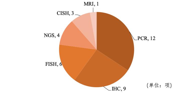 2.1 检测平台 主要包括PCR、IHC、ISH、MRI和NGS。目前,检测平台可分为分子诊断平台和免疫诊断平台,其中以分子诊断平台为主。