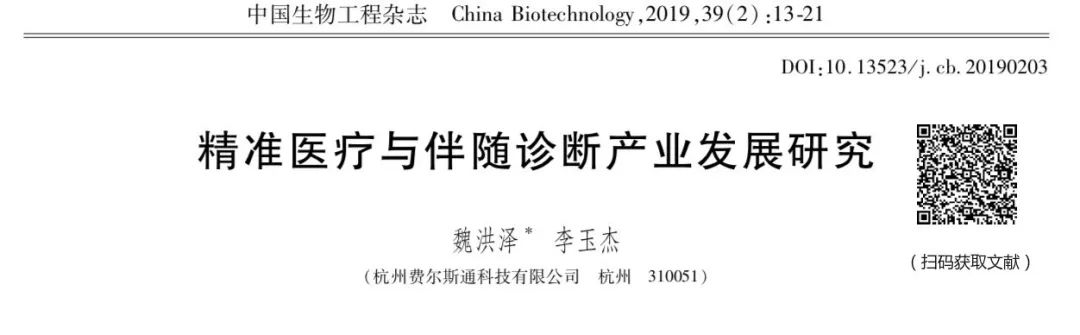 声明:本文刊载于《中国生物工程杂志》2019年第2期,转载引用请注明:魏洪泽,李玉杰.精准医疗与伴随诊断产业发展研究[J].中国生物工程杂志,2019,39(2):13-21.