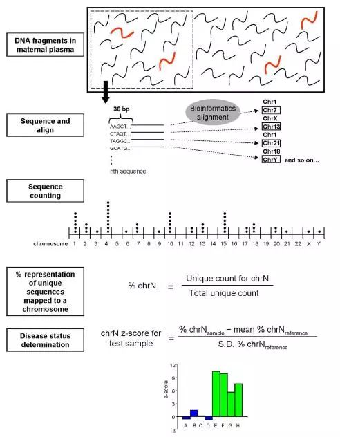 基于母体外周血胎儿游离DNA(cell-free fetal DNA,cffDNA)和高通量测序(Next-generation Sequencing,NGS)等技术的无创产前检测(Non-invasive prenatal testing,NIPT)正成为目前应用最为广泛的临床高通量基因检测技术应用。继1997年发现孕妇外周血中存在cffDNA后[1],香港中文大学的卢煜明(Dennis YM LO)教授团队在2008年提出了应用NGS对cffDNA进行检测从而评估唐氏综合征风险的方法[2],即NIPT。自此至今的十多年里,NIPT逐步得到了临床上的验证和技术上的发展。本文将从多个维度来介绍和剖析NIPT技术发展的现状,并思考和评估NIPT技术发展的前景。 本文将从三个角度剖析NIPT产业的发展方向,包括:(A)技术研发;(B)应用发展趋势;(C)临床科研合作。 NIPT的技术研发 NIPT的技术研发,首先要基于对应的技术平台。目前主流的NIPT是基于NGS技术的,主要分为illumina的基于可逆荧光终止子技术的测序平台以及thermofisher scientific的离子电压半导体技术的测序平台。前者的技术代表,在国内是以贝瑞和康的贝比安为主,国外有illumina的Verifi(收购自Verinata)[3]、natera的Panorama[4]和Sequenom(现Integratedgenetics)的MaterniT21 PLUS[5];后者的技术代表,在国内是达安基因(达瑞健康)的无创产前检测、博奥检验的诺儿康[6],国外有PremaItha的IONA[7]等。除此之外,华大的NIFTY[8]和NIFTY全因可基于多个NGS平台,包括基于原CG(Complete Genomics)的高通量三代测序平台,而国内还有天昊诊断的基于毛细管电泳的一代测序平台的NIPT技术,在国外有RocheqixiaAriosa为避免专利问题而重新研发的基于微阵列芯片技术进行DNA捕获的Harmony[9]。不同的技术平台,其NIPT的技术研发思路和发展前景是截然不同的。 基于NGS的NIPT技术研发 主流的基于NGS的NIPT技术研发,基本原理在于分析cffDNA的拷贝数变异(CNV)。最初Dennis LO团队在检测胎儿21号染色体三体时采用的是read count的CNV分析辅以Z-test作为显著性差异检验[2],后续在13/18号染色体三体的研究中增加了对GC含量进行read count校正的方法[10]。这种Z-test属于baseline Z-test,即与阴性样本参考库的分布进行比较,这个阴性样本read count均值即为baseline value。实际上根据这个参考值的不同,可以有多种Z-test。华大的张秀清等人提出了以样本自身内部长度接近的染色体read count值作为参考值进行Z-test[11],即internal chromosome。达瑞健康的NIPT则采用了以样本自身中值作为参考值,再与阴性样本参考库进行比较。上述3种Z-test都是常规的NIPT算法基础,目前市场上绝大多数的胎儿染色体非整倍体检测的NIPT产品都是在这个算法基础上进行完善。另一NIPT始创团队Stephen Quake在当时采用的是相关性分析和T检验[12]。 图1 基于read count的NGS NIPT的方法原理[2] 华大的NIFTY文章中,除了对阴性样本参考库的比较外,增加了对该样本可能存在的阳性情况的比较,即加入了对胎儿比例的考虑,并将两者的Z值相除得到L值,对L值进行T分布检验来判断结果[8]。这个考虑了胎儿比例和阳性情况的算法有助于提升NIPT的准确性。另外有欧洲的研究团队提出了对Z值再进行Z检验得到ZZ值,并同时采用Z值和ZZ值进行分类比较,来降低假阴性和假阳性[13]的发生。但这种方法在判定上过于累赘,而且受阴性样本库质量的影响。达安临检最近发表的文章中,提出了使用支持向量机(SVM)辅助NIPT判定的方法,通过对上述3种Z检验在阴性和阳性预测上的6种Z值结果,加上样本的临床指征作为机器学习的参数,训练出SVM模型来进行判定,有效提升准确率的同时降低约3%的灰区重测成本[14]。使用机器学习算法和人工智能深度分析,有望成为未来1-3年内提升NIPT准确性的发展方向。 对于基于read count的NGS NIPT技术,在实验环节上无论是illumina还是ion torrent平台,PCR扩增都是一个影响DNA真实拷贝数的环节。贝瑞及其合作者提出的环化单分子重测序技术cSMART[15]预期可消除这一环节引起的偏差,有助于在相对低的测序通量下获得稳定的真实信号。其实任何NGS技术的研发和应用,实验和计算都是紧密相关的。因此,不同的NIPT厂商必须要根据其NGS平台进行技术上的优化,这既可以是计算上的也可以是实验上的。 图2 基于size count 的NGS NIPT的方法原理[16] Dennis LO团队在研究中发现游离的胎儿DNA长度比游离的母体DNA长度要显著短,因此通过对cfDNA的序列长度size进行统计,并与阴性样本参考库的对应值进行比较,即可进行染色体非整倍体的判定[17]。该团队后续还研发出相关的程序来进行计算[18],并以此基础,开发出无需阴性样本参考库,即control-free的方法[16]。这种基于cfDNA size的NIPT,比较有效地降低了由于cffDNA的不足所造成的假阴性的问题。不过,cfDNA长度的计算依赖于测序方法本身:在illumina平台上,需要进行双端(Paired-end)的测序才能得到DNA片段长度的信息,而这个在一般NIPT产品如贝瑞的贝比安里是缺乏的;而在ion torrent平台,很神奇的是,尽管也是单端(Single-end)测序,但300个循环(flow)里总能满足cfDNA全长约150bp的测序,因此ion torrent平台能满足cfDNA长度需求的同时节省测序的成本和时间。目前基于size count的NGS NIPT技术研发好像只有Dennis LO团队在做,算法可被直接用于illumina平台的NIPT厂商的产品,然而ion torrent平台的NIPT产品应该同样可以适用。基于size count的NGS NIPT在计算量上比基于read count的NGS NIPT要少很多,对计算资源来说是一个优势,但准确性仍需进行大样本的分析。 其他NIPT技术研发 如果单单从检测21三体的角度出发,NIPT