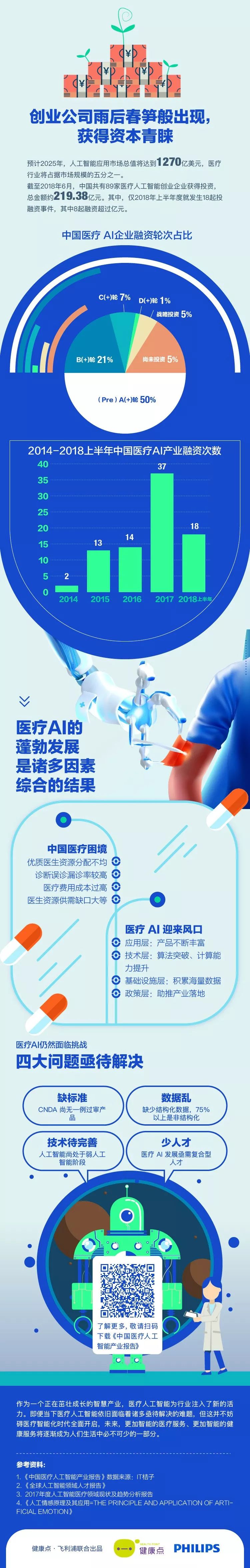 针对以上问题,财新健康点和飞利浦中国近期联合发布了《中国医疗人工智能产业报告》。我们整理报告精华,制作了报告信息图,供大家快速了解医疗AI。