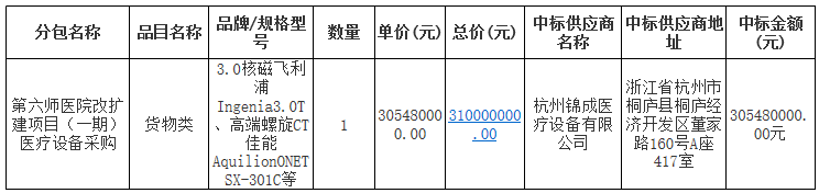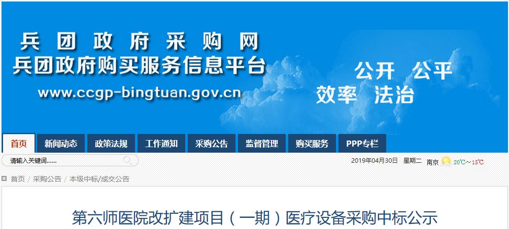3.1亿医疗设备大单,仅1家医疗器械企业中标!中标企业注册资金仅500万...... 4月23日,兵团政府采购网发布《第六师医院改扩建项目(一期)医疗设备采购中标公示》。 第六师医院改扩建项目(一期)医疗设备采购,总预算金额3.1亿!涉及影像、超声、手术监护、检验、信息化等十四大类医疗设备采购! 最终杭州锦成医疗设备有限公司以3.0548亿元中标!公开资料显示,杭州锦成医疗设备有限公司成立时间为2018年7月,成立时间不到一年,注册资金500万元,经营范围为销售、维修:第I类、第II类、第III类医疗器械;医疗器械技术咨询服务。 本次招标内容涉及医疗产品331项,属于医疗行业目前较大的项目。 除了影像、超声、麻醉、监护、检验等近10大类相关设备采购,还包括信息化项目:医院信息化管理统HIS, 医院检验系统LIS ,医院影像系统PACS, 医院电子病历系统RIS, 区域人口健康管理平台,远程会诊平台,智慧医院系统等等;另外医疗专项建设工程项目涉及20间手术室,消毒供应中心,防辐射工程等。此次均打包给1家医疗器械企业。 而在手术室装修总体技术要求中,明确必须具备的项目资质要求也是非常高的。 |