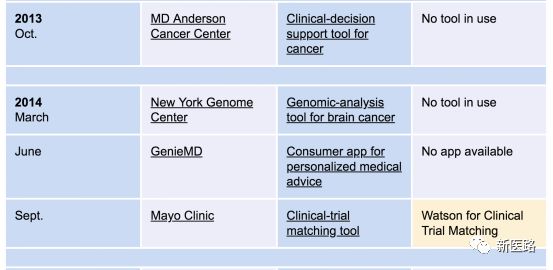 下表为IBM 在医疗方向专案与目前的进展: