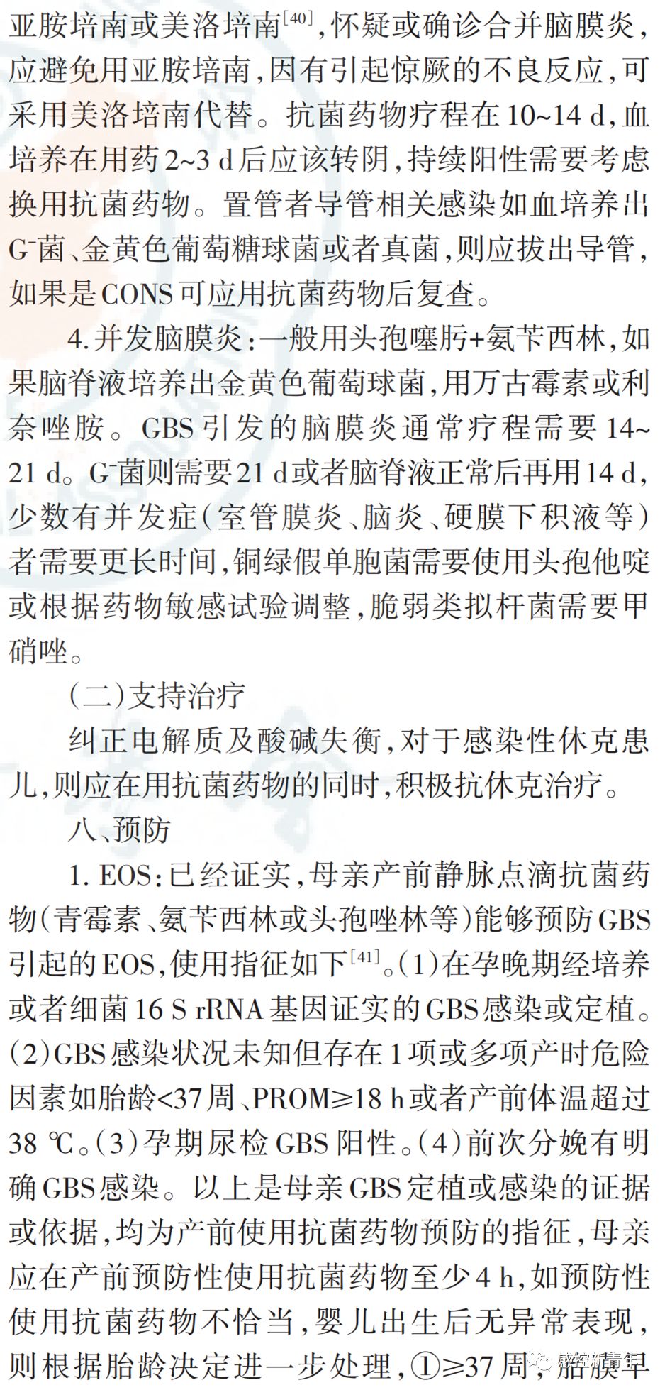 作者丨中华医学会儿科学分会新生儿学组 中国医师协会新生儿科医师分会感染专业委员会 来源丨中华儿科杂志, 2019,57(4) : 252-257. DOI丨 10.3760/cma.j.issn.0578-1310.2019.04.005 新生儿败血症诊断及治疗专家共识(2019年版) 新生儿败血症仍然是威胁新生儿生命的重大疾病,其在存活新生儿中的发病率为4.5‰~9.7‰。1986年及2003年中华医学会儿科学分会新生儿学组分别制定"新生儿败血症诊断标准初步方案""新生儿败血症诊疗方案"。近年来,病原谱发生变化,如B族链球菌(group B streptococcus,GBS)在早发败血症(early-onset sepsis,EOS)中检出有增高趋势;国内外专家对非特异性检查在新生儿败血症中指导价值的认识有所改变;在抗菌药物使用的观念、时机上也发生了变化。因此,中华医学会儿科学分会新生儿学组及中国医师协会新生儿科医师分会感染专业委员会于2016年5月成立共识制定工作组,历经3年,全面检索并评价相关文献,并经过多轮专家函审及会议讨论,结合我国实际国情制定"新生儿败血症诊断及治疗专家共识(2019版)"。本共识旨在进一步规范新生儿败血症的诊断及治疗,帮助新生儿科医生严格掌握抗菌药物使用及停用指征。 |