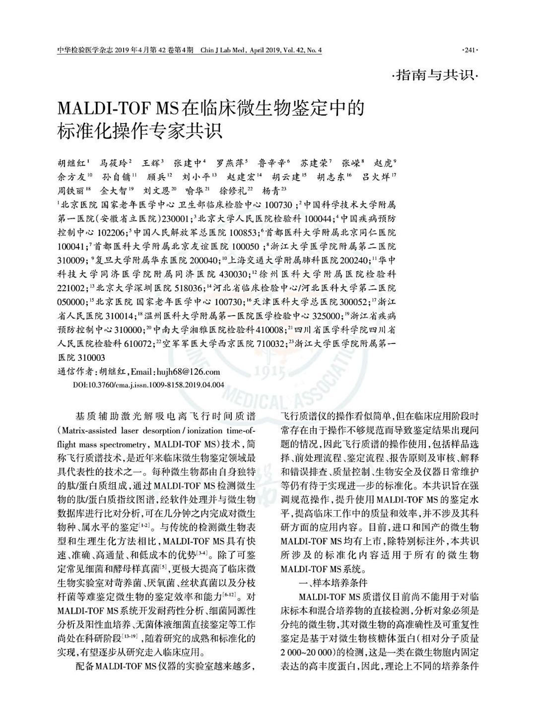 2019-5-16 19:54| 编辑: 小桔灯网| 查看: 3433| 评论: 0|来源: 中华检验医学杂志 2019年4月第42卷第4期