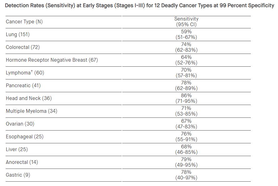 今日,致力开发早期癌症液体活检的明星公司GRAIL,公布了该公司的多癌种早期血检的最新临床试验结果。试验数据表明,该公司的多癌种血检能够在癌症早期以至少99%的特异性(相当于假阳性小于1%)检测出12种致命癌症的信号。而且,这一检测能够以高度的精确性判定癌症在身体中的组织起源。 尽早诊断癌症,从而在癌症初期就开始干预或治疗,是提高癌症患者生存率的重要手段。然而,目前对很多癌症类型的诊断需要使用侵袭性组织活检。这不但耗时耗力,而且可能给人们带来不必要的伤痛。因此,旨在检验血液中与癌症相关的生物标志物的液体活检成为癌症诊断开发的重要方向。 GRAIL公司致力于综合下一代基因测序(NGS)技术,尖端计算机科学和数据科学,以及大型临床研究,开发早期诊断癌症的液体活检手段。在ASCO年会汇报的数据表明,该公司开发的多癌种血液检测,能够以至少99%的特异性(相当于小于1%的假阳性),在早期阶段从血液中发现12种致命癌症类型的强烈信号。这一检测手段日前获得FDA授予的突破性医疗器械认定。 这12种癌症包括肛肠癌(anorectal cancer)、结直肠癌、食道癌、胃癌、头颈癌、HR-乳腺癌、肝癌、肺癌、卵巢癌、胰腺癌,以及多发性骨髓瘤和淋巴肿瘤。这些癌症种类导至美国接近63%的癌症死亡。 在ASCO汇报的试验结果来自GRAIL公司正在进行的循环无细胞基因组图谱(Circulating Cell-free Genome Atlas,CCGA)研究。包含对2301名参与者的检测,其中1422名参与者患有处于不同阶段的癌症,而879名参与者尚未确诊患有癌症。 试验结果表明,这一血检检测12种预先设定的癌症种类的平均灵敏度为76%(n=671/882, 95 CI: 73-79%)。对肿瘤起源组织检测的准确性在84-92%之间。试验数据的细节请见下面的图表: ▲GRAIL液体活检在检测12种致命癌症类型时的表现(图片来源:参考资料[1])“这些令人兴奋的试验结果意味着我们可以达到癌症早筛血液检测的要求,它们包括能够使用一种测试在早期发现多种致命癌症类型,高度准确地判断癌症的组织起源,并且具有非常低的假阳性结果,”GRAIL公司首席执行官Jennifer Cook女士说:“我们经过改良的基于甲基化技术的检测手段可能解决已有早筛检测手段存在的缺陷。基于这些积极结果,我们计划继续推进这些检测的开发和推广。” 参考资料: [1] GRAIL Announces Positive New Data with Multi-Cancer Early Detection Blood Test from CCGA Study. Retrieved May 31, 2019, from https://grail.com/press-releases/grail-announces-positive-new-data-with-multi-cancer-early-detection-blood-test-from-ccga-study/ |