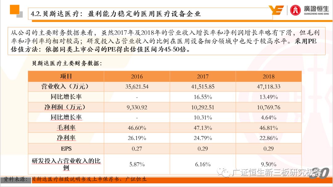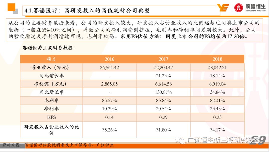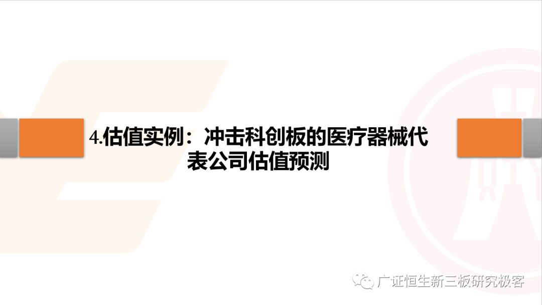 以冲击科创板的医疗器械公司赛诺医疗、贝斯达医疗及热景生物为代表,预测其估值区间分别为17-20倍PS、45-50倍PE及35-45倍PE。