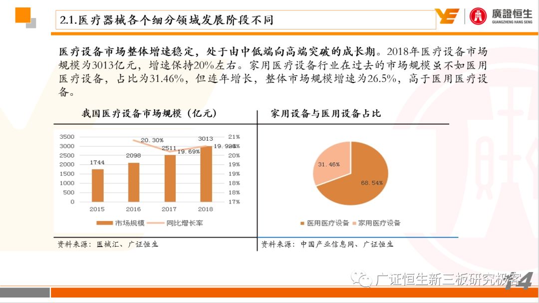 医疗器械各细分领域发展阶段不同,估值方法应视具体行业及企业特点调整。