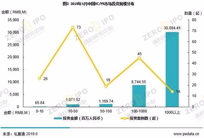 据清科qixia私募通数据统计,本月中国股权投资市场投资规模小于1,000万元人民币的小额投资事件共发生26起,环比下降25.7%,共涉及金额0.66亿元人民币,环比下降36.2%;投资金额在1,000万到5,000万元人民币之间的投资事件共发生73起,环比下降14.1%,共涉及金额10.72亿元人民币,环比下降24.8%;投资金额在5,000万到1亿元人民币之间的投资事件共计发生19起,环比下降9.5%,共涉及金额11.70亿元人民币,环比下降8.6%;金额在1亿到10亿元人民币之间的投资事件共发生45起,环比下降21.1%,共涉及金额87.45亿元人民币,环比下降41.8%;投资金额在10亿元人民币以上的大额投资共计发生14起,环比上升55.6%,共涉及金额300.94亿元人民币,环比上升111.1%。本月股权投资市场总体投资案例数较上月338起有所回落,但融资总额涨幅超过20.0%,主要得益于投资金额在10亿元人民币以上的大额投资案例的总融资金额大幅增加,涉及投资金额超300亿。 A轮依然稳居榜首 上市定增进入本月前十 据私募通数据统计,5月中国股权投资市场的投资轮次从数量分布上来看,A轮仍处于领先位置,排名第二的是B轮,天使轮居第三位,案例数分别为78起、49起、44起,案例数占比合计64.8%。在投资金额方面,本月位居榜首的是A轮,涉及投资金额151.13亿元人民币。本月单笔融资金额排前十位的案例中,涉及上市定增的轮次有三起,受其影响,上市定增轮次融资金额本月位居第二位,涉及投资金额66.33亿元人民币,主要得益于本月阿里健康22.72亿港币增资、芒果超媒近20亿人民币增资及优信二手车的2.3亿美元增资。位居第三位的是其他轮次,涉及投资金额60.62亿元人民币。 生物技术/医疗健康行业 本月融资过100亿 据私募通数据统计,5月VC/PE市场投资共涉及20个一级行业。从案例数量上来看,IT、互联网及生物技术/医疗健康仍然位居前三位。其中,排名第一位的互联网行业共发生投资事件61起,第二位的是IT行业,发生投资事件60起,生物技术/医疗健康行业发生投资事件25起,位居第三。在投资金额方面,生物技术/医疗健康行业备受瞩目,本月10亿元以上的大额融资事件中,关于生物技术/医疗健康行业的有4起,其中,金额最大的为5月9日,京东集团qixia医疗健康平台京东健康的10亿美元A轮融资。受其影响,本月排名第一的是生物技术/医疗健康行业,涉及投资金额123.52亿元人民币,占比30.0%。此外,本月IT行业涉及投资金额100.77亿元人民币,占比24.5%,位居第二位。排名第三位的是互联网行业,涉及投资金额48.24亿元人民币,占比11.7%。 北京融资金额占据半壁江山 据私募通数据统计,从投资地域上看,5月发生的264起投资事件涉及27个省市。从案例数量上看,排名前三的地区总案例数量为144起,占比54.5%。其中,北京地区排名第一,共发生61起投资事件,占投资案例总数的23.1%;排名第二的上海地区共发生46起投资事件,占比17.4%;深圳地区排名第三,发生投资事件37起,占比14.0%。在投资金额方面,本月14起单笔投资金额在10亿元以上的投资事件中,有一半发生在北京地区,受其影响,北京地区以207.32亿元人民币的融资金额,稳居本月第一位,占比50.4%。位居第二位的是上海地区,涉及投资金额45.38亿元人民币,占总投资金额的11.0%。江苏地区涉及投资金额45.35亿元人民币,占比11.0%,位居第三位,融资金额与第二位的上海地区仅仅相差约0.02亿元人民币。 各渠道退出数量大幅上升 IPO退出数量涨幅超过60% 据私募通数据统计,5月共发生退出事件170笔,环比上升60.4%,共涉及企业37家。其中IPO退出涉及17家企业,并购退出涉及10家,新三板挂牌退出涉及10家。本月IPO退出数量较上月的72笔增幅明显,共计170笔,环比上升60.0%;与此同时,本月新三板退出的数量也由上月的5笔增加至19笔,涨幅280.0%。 |