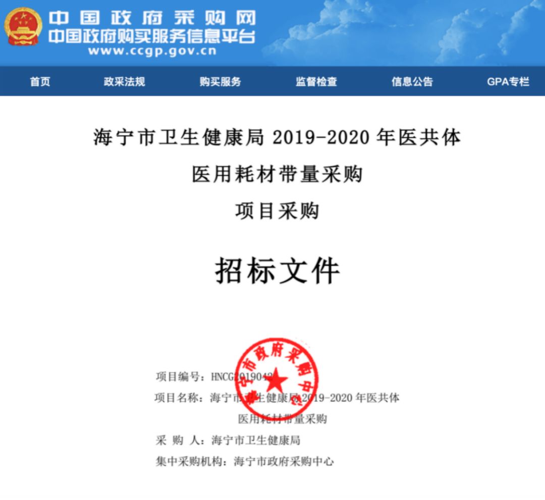 《公告》里明确指出,本次项目是由海宁市卫健局统计汇总各公立医疗机构(海宁市第二人民医院除外)带量采购的医用耗材目录、价格和年采购数量,对带量采购的医用耗材打包进行招标。