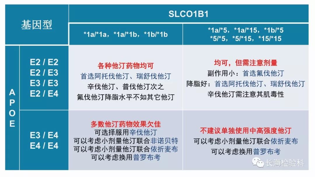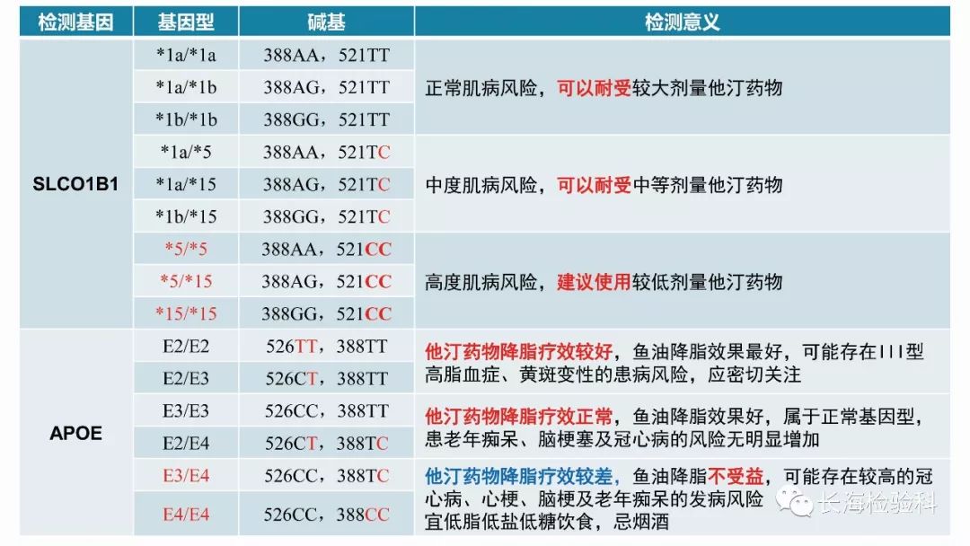 随着人民生活水平的提高,心脑血管疾病已成为危害我国民众健康的首要疾病。他汀类药物自出现以来就成为临床使用最为广泛的降脂药,是治疗高脂血症的首选药物。说到这,就有高脂血症患者要疑惑了,“既然他汀类药物的疗效那么好,为什么我吃了效果就不明显呢?小张血脂也高,医生怎么没有让他也服用他汀类药物呢?” 为什么会出现这种情况呢? 这种情况可能与患者体内的药物代谢基因大有关联。部分基因的缺失或者突变,会使患者服用他汀类药物后疗效不明显,或者副作用很大。他汀类药物代谢途径中有两个关键的基因:SLCO1B1和APOE。 SLCO1B1在他汀类药物代谢中的作用 SLCO1B1具有遗传多态性,其表达出来的转运多肽(OATP1B1)活力存在个体差异: