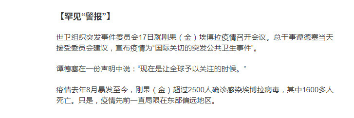 本文专家:田靖博士,南部战区疾病预防控制中心,主治医师 本文审稿:陈海旭博士,解放军总医院第二医学中心,副研究员 近日,一则新闻引起了全球的广泛关注——世卫组织(WHO)发表文章称,刚果(金)埃博拉疫情是“国际关注的突发公共卫生事件(Public Health Emergency of International Concern,PHEIC)”。 图片来源:世卫组织官网截图 新闻截图 迄今为止,国际关注的突发公共卫生事件(PHEIC)只被宣布过五次,分别是: 2009年西班牙流感疫情、 2014年野生型脊髓灰质炎病毒疫情、 2014年西非埃博拉疫情、 2016年巴西寨卡病毒疫情、 2018年刚果(金)埃博拉疫情, 其中埃博拉疫情就占了2次。 图片来源网络 本次刚果(金)埃博拉疫情从去年8月暴发至今,刚果(金)超过2500人确诊感染埃博拉病毒,其中1600多人死亡。 截图来源:新华网客户端 刚果(金)政府2019年7月16日证实,东部第一大城市戈马首例感染埃博拉病毒的患者死亡,抗击埃博拉疫情进入关键阶段。 7月17日,WHO就宣布了全球卫生紧急状态。 图片来源:新华社 埃博拉病毒,大家听着可能感觉很陌生,其实它在很多影视作品中都出现过,比如《战狼2》中致死率极高的拉曼拉病毒,这些虚构的致命病毒都是以现实中存在的埃博拉病毒作为原型的。 那么, 埃博拉病毒到底有多恐怖? 它是如何在人群中传播的? 我们一起来看看。 埃博拉病毒是如何被发现的? 埃博拉病毒属于丝状病毒科,是单股负链RNA包膜病毒,其自然宿主为非洲和西太平洋地区热带雨林中的狐蝠科果蝠,可引起灵长类动物(人类、猴子、黑猩猩等)出现埃博拉出血热。 它的外形,长得很像蛇,还有一个羊头。埃博拉病毒可以侵染肝、脾为主的多种器官,具有较高的致死率(25%-90%),尚无有效疫苗和治疗手段。埃博拉分为五种血清型,其中扎伊尔型对人类致病性最强。 埃博拉出血热在中非和东南亚的热带雨林流行了几个世纪,曾在撒哈拉以南的部分地区造成间歇性流行,没有引起大规模死亡,一直没有引起关注。 直到1976 年,埃博**陆欧美,造成埃博拉发现以来规模最大、最严重的疫情,累计报告病例和死亡病例是以往疫情的总和,才第一次被记录在案。 埃博拉病毒有多恐怖? 由于致病微生物的生物危害程度不同,通常按生物危害等级将微生物和生物医学实验室的安全相应划分为4级,分别是生物安全一级(BSL-1)、生物安全二级(BSL-2)、生物安全三级(BSL-3)和生物安全四级(BSL-4),BSL-4也是生物安全最高等级。 举例来说,常见的麻疹病毒属于BSL-1,流感病毒属于BSL-2,炭疽、狂犬病毒属于BSL-3,而埃博拉病毒则属于生物安全最高等级BSL-4,操作和研究它时必须要进行最大程度的防护。 它的传播途径有哪些? 接触传播是埃博拉病毒的最主要传播途径:与埃博拉病毒感染者血液、体液接触、与被病毒污染的物体以及感染动物接触均可以感染埃博拉病毒。 埃博拉病毒存在于某些康复病人的血液中长达3月左右,因此,感染治愈者也是重要的传播源。 空气飞沫可以使猴子染病,但是目前尚未出现人类飞沫传播的个案。 埃博拉感染症状有哪些? 感染症状通常有发烧、严重的头痛、肌肉疼痛、虚弱、腹泻、呕吐、腹部或者胃部疼痛、莫名其妙的出血或者淤青。 这些症状在感染病毒的2至21天内出现,平均为8到10天,与流感和疟疾有相似的症状。 图片来源网络 埃博拉感染的幸存者产生抗体,在其康复后10年内都能检测到,但是抗体对于预防埃博拉感染是否有效尚不明确。 哪些是感染埃博拉的高危因素? 医院内和家庭内的传播是导至埃博拉暴发流行的重要因素。 旅游者感染埃博拉的概率很低,但是当游客与非洲的猴子、猩猩、蝙蝠等动物接触时,将扩大其感染机会。 目前,有埃博拉确诊病例的国家是;刚果共和国(刚果布)、科特迪瓦、刚果民主共和国(刚果金)、加蓬、南苏丹、乌干达、几内亚、利比里亚、塞拉利昂、尼日利亚,去往以上国家时应该特别注意。 图片来源网络 如何预防埃博拉病毒感染? 埃博拉疫苗将是预防埃博拉病毒感染的理想手段,多个疫苗还处于试验阶段,而目前使用的疫苗有VSV-EBOV,有效率为70%-100%,但这些药都是在公共卫生事件应急处置获批的,所以数据有效性和安全性都尚待观察。 去往以上国家时,应特别注意以下几点: 1. 避免与病人、尸体接触,不接触血液、体液,以及被污染的物品; 2. 避免与动物的接触,不吃不熟的肉类以及野生动物; 3. 经常用肥皂洗手,尽量不用手接触眼睛、鼻子和嘴,必须接触时请确保手的干净; 4. 医务人员接触病人时要做好防护和自我保护,做好院内感染控制; 5. 从疫区归来的人员应提高警惕,如有不适,请迅速就医或与疾控中心联系。 |