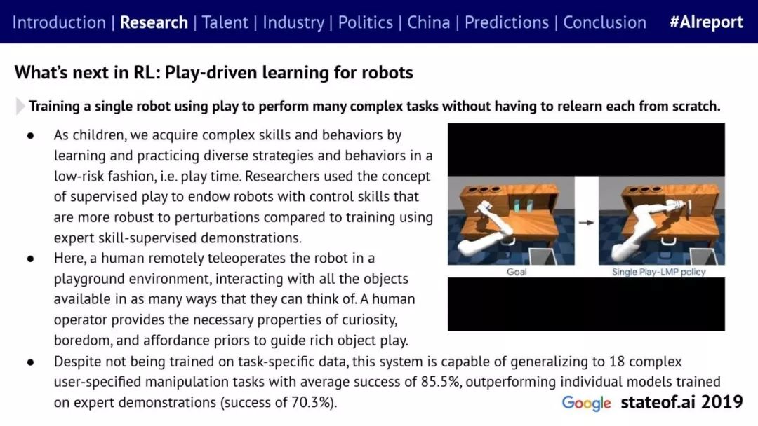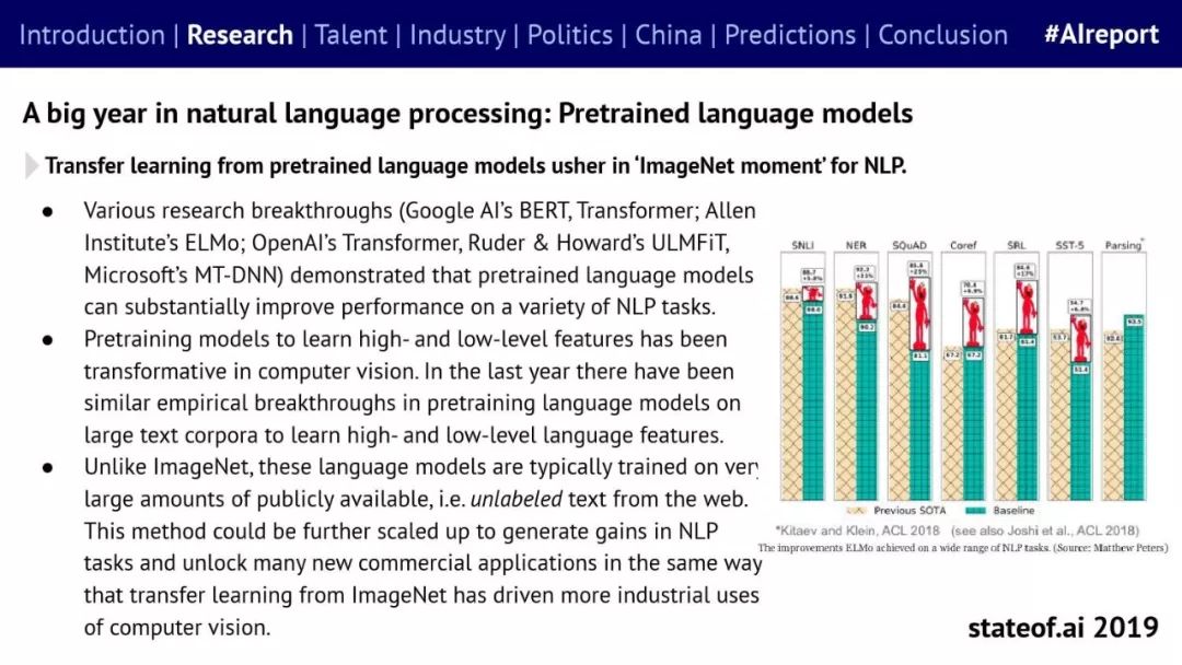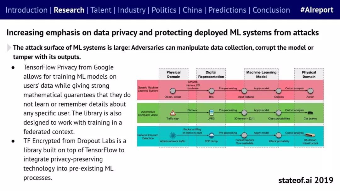 Stateof.ai发布了“2019年AI报告”。 面部识别用户体验:减少日常消费者用例的摩擦 在中国,人脸识别技术已经开始应用。人们在店内刷脸支付,在机场获得航班详情等。 中国网络巨头扩展到农牧业 阿里巴巴和京东都进入了畜牧业和昆虫养殖业,包括养鸡、养猪和蟑螂养殖。并在养殖过程中利用人工智能收集和分析数据。 中国企业AI研发支出快速增长,但总额仍然落后。中国企业的研发支出同比增长34%,但美国企业仍占全球科研支出的61%。 从数据来看,中国芯片销售和采购在快速增长,但是购买远高于销售。 在过去的3年里,一些中国工业企业40%的劳动力已经实现自动化。这在一定程度上是因为中国的机器人年装机量自2012年以来增长了500%(欧洲为112%)。但是,目前还不清楚这些安装的机器人在多大程度上运行AI软件,或者对AI的普及做出了贡献。 京东的上海配送中心使用自动化仓库机器人,每天组织、拣选和发货20万份订单,该设施仅由4名工人管理。京东的仓库数量和面积同比增长45%。 2018年有33家中国公司在美国交易所进行IPO,(比去年同期增长2倍),接近2010年的历史最高水平。2018年,美国共有190宗IPO。 中国团体拥有最多的AI专利,但2017年只有23%是“发明专利”。 91%的5年设计专利和61%的5年实用新型专利被放弃。相比之下,维护费用按照5年的美国专利的85.6%支付。 中国已经发布了比美国更多的机器学习方面的研究。 |