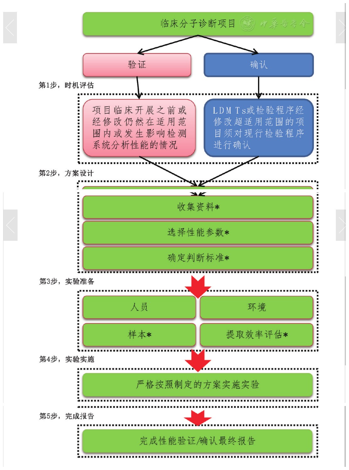 2.临床分子检验项目方法学验证和确认是循证医学的具体实践:循证医学(evidence-based medicine,EBM)的核心是医疗决策应在现有的最好的临床研究依据基础上作出。对于临床诊断而言,性能验证或确认程序为其提供了可信、可用的临床诊断依据。故从循证医学的角度,实验室无论是否进行ISO15189认可,在项目开展前也应该做这项工作。
