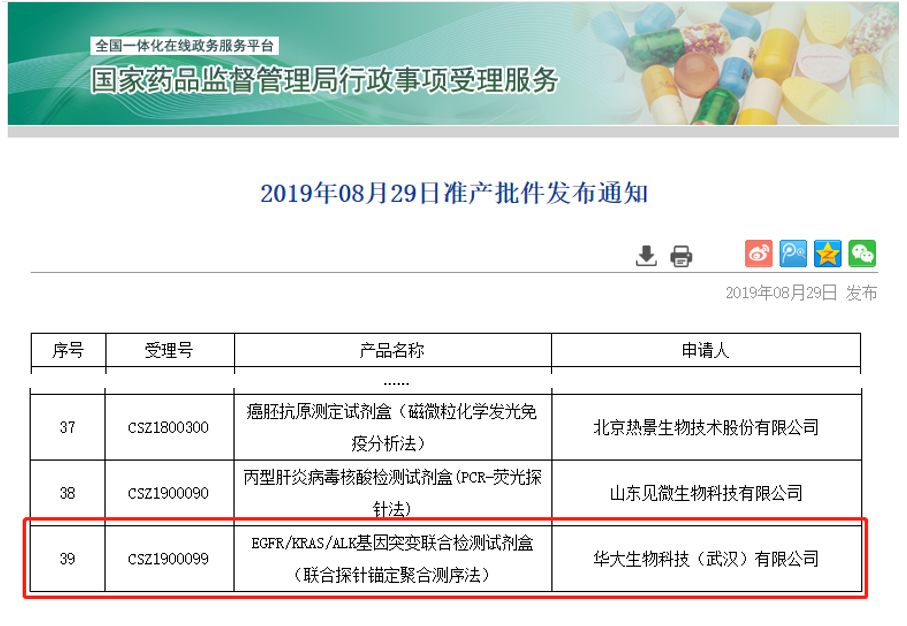 2019年8月29日,国家药品监督管理局官网公示,深圳华大基因股份有限公司(股票代码:300676)全资子公司华大生物科技(武汉)有限公司生产的 “EGFR/KRAS/ALK基因突变联合检测试剂盒(联合探针锚定聚合测序法)”,通过三类医疗器械产品的注册审批(国械注准20193400621)。 该试剂盒的获批,打破了国外测序仪在肿瘤基因检测试剂盒领域的垄断局面,意味着国产高通量测序仪以其核心技术和过硬质量在肿瘤临床领域实现重大突破。 打破国外测序仪在肿瘤基因检测试剂盒领域的垄断局面 该试剂盒用于定性检测非小细胞肺癌患者FFPE组织样本中EGFR/KRAS/ALK基因变异,可用于吉非替尼、盐酸埃克替尼、克唑替尼药物的非小细胞肺癌适应症的伴随诊断检测。其对于EGFR、KRAS基因突变和ALK融合的检测限均为1%,达到了国内领先水平。可在3款华大基因测序仪上使用,搭载自动化建库和报告解读系统,可实现从样本到报告的全自动化流程,满足临床用户的多样化和个性化需求。 尹烨 华大基因CEO “华大成立二十年以来,始终秉承‘基因科技造福人类’的愿景,立志将精准医疗普惠到千家万户。目前肿瘤的精准诊疗技术发展很快,然而新技术、新方法价格高居不下,伴随诊断普及率仍然偏低,患者难以从中获益。故此次获批后,我们将迅速致力于国产高通量测序设备和试剂盒的全面推广,结合多年来的适合中国用户的大数据积累,持续推进测序技术在肿瘤临床的应用。让更多医生和患者从国产高通量检测技术中获益,为健康中国2030贡献坚实的自主科技力量。” 华大基因作为中国基因行业的奠基者,秉承“基因科技造福人类”的愿景,通过近20年的人才积聚、科研积累和产业积淀,已建成覆盖全球百余个国家和全国所有省市自治区的营销服务网络,成为屈指可数的覆盖本行业全产业链、全应用领域的科技公司,立足技术先进、配置齐全和规模领先的多组学产出平台,已成为全球屈指可数的基因大数据中心、科学技术服务提供商和精准医疗服务运营商。 公司主营业务为通过基因检测、质谱检测、生物信息分析等多组学大数据技术手段,为科研机构、企事业单位、医疗机构、社会卫生组织等提供研究服务和精准医学检测综合解决方案。华大基因以推动生命科学研究进展、生命大数据应用和提高全球医疗健康水平为出发点,基于基因领域研究成果及精准检测技术在民生健康方面的应用,致力于加速科技创新,减少出生缺陷,加强肿瘤防控,抑制重大疾病对人类的危害,实现精准治愈感染,全面助力精准医学。 |