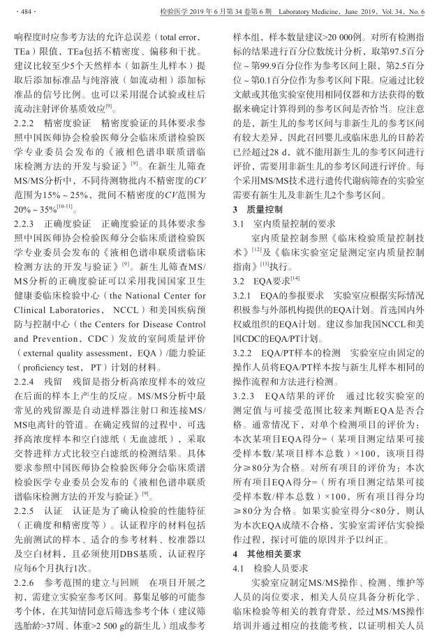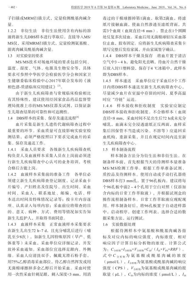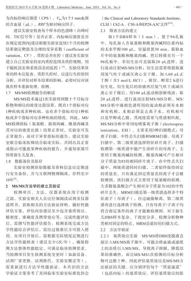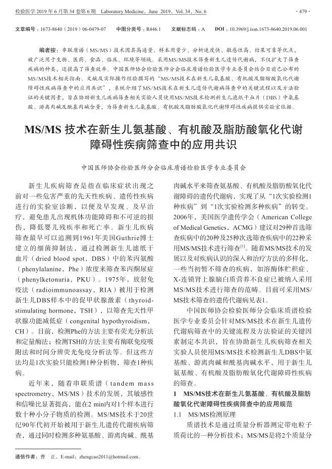 近期,由中国医师协会检验医师分会临床质谱检验医学专业委员会撰稿的《MS/MS技术在新生儿氨基酸,有机酸及脂肪酸氧化代谢障碍性疾病筛查中的应用共识》在《检验医学》(2019年34卷第6期)发表论著,探讨了液相串联质谱(MS/MS)技术在新生儿遗传代谢性疾病筛查中的应用。之前本平台发布过由卫生部临床检验中心新生儿疾病筛查室间质评委员会组织专家制定的《新生儿疾病串联质谱筛查技术专家共识》,这两篇文章均具有权威性的指导意义。点击查看大图