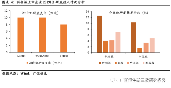 营业收入方面,已发行的28家企业2019H1营业总收入中位数为2.97亿元,同比增长率中位数达38.28%。收入最高的企业未中国通号(20.51亿元),最低者为新光光电(6145.16万元)。其中,16家企业2019H1营收收入在0-5亿元区间,3家企业营业收入超10亿元。相比2018年全年,2019H1科创板企业营收情况转好,全部企业实现营业收入正增长。分板块对比,科创板营业收入增长明显快于主板、中小板、创业板上市企业。 净利润方面, 2019H1已上市的科创板企业平均归母净利润中位数为6,563.48万元,同比增长率达35.59%。相比2018年,2019H1净利润同比增长率为负的企业增加,但相对主板、中小板创业板而言,科创板的净利润增长更快。 从研发投入的角度看,2019H1已上市科创板企业平均研发投入达6758.05 万元,中位数为3,506.38万元,中国通号、晶晨股份、澜起科技、中微公司研发费用超亿元,研发强度达12%,大幅高于其他板块。 从盈利能力的角度看,2019H1,28家上市企业ROE平均数为10.32%,中位数为8.47%。目前较多企业净资产收益率集中在0-20%区间内。行业方面,目前医疗器械、工业金属和其他电子II行业的ROE高于10%,其他行业如专用设备半导体表现也表现良好,化学制药制品、通用机械、航空装备ⅡROE相对较低。