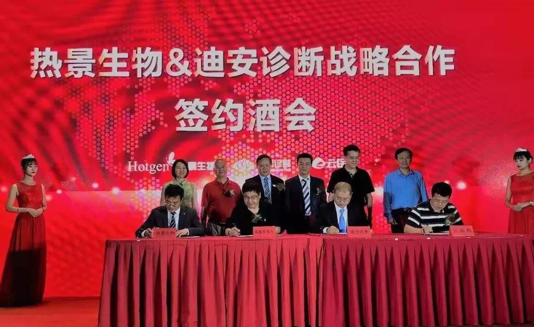 2019年8月30日,热景生物与迪安诊断在苏州金鸡湖畔签署战略合作协议,热景生物董事长林长青先生、迪安吴征涛先生、云医购营销中心副总经理赵磊先生、“专项”病毒性肝炎诊断课题负责人、北京大学基础医学院鲁凤民教授等参加签约仪式。签约仪式邀请白求恩精神研究会检验医学分会主任委员董书魁教授作为嘉宾主持,来自热景生物、迪安诊断、合作伙伴及行业领域专家、媒体代表等共同见证了这一重要时刻。