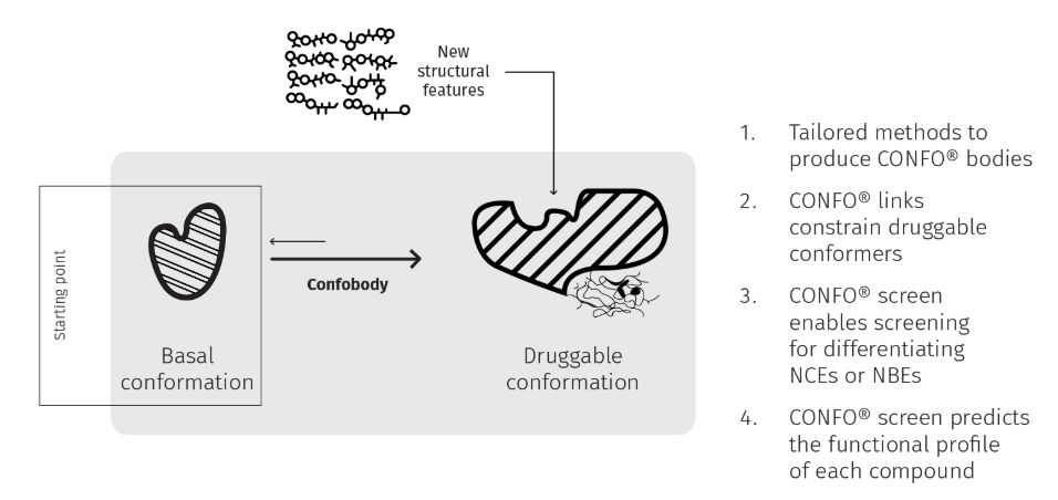 临床专攻:靶向G蛋白偶联受体,治疗纤维化、代谢和神经退行性疾病 G蛋白偶联受体(GPCR)是人体中最大的膜蛋白家族,它们也是治疗不同疾病的热门药物靶点。对GPCR的传统理解是它像开关一样可以被激活或者抑制。然而,新近研究表明,GPCR的不同配体,可以导至GPCR被固定在特定构象,从而激发不一样的下游信号通路。Confo公司利用称为Confobodies的抗体片段,将GPCR的结构稳定在特定构象。这种方法能够暴露出GPCR在特定构象下可以被小分子药物靶向的区域,从而提高高通量筛选的效率。 该公司在今年5月完成数额为3340万美元的A轮融资。