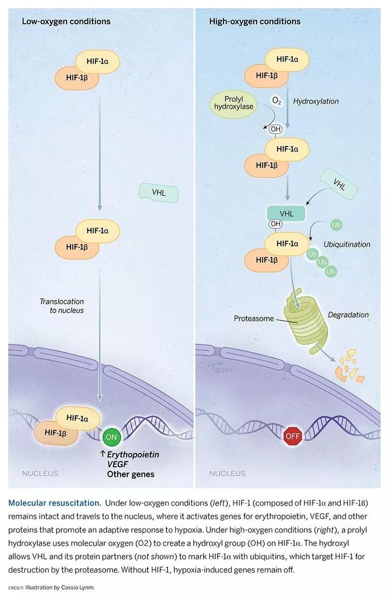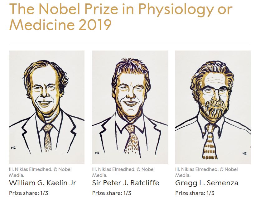 昨日,2019年诺贝尔生理学或医学奖揭晓获奖名单。William G. Kaelin教授、Peter J. Ratcliffe教授、以及Gregg L. Semenza教授因为对人类以及大多数动物的生存而言,至关重要的氧气感知通路的研究摘得殊荣。 ▲William G. Kaelin教授(左)、Peter J. Ratcliffe教授(中)、以及Gregg L. Semenza教授(右)(图片来源:参考资料[1]) 治疗贫血的创新疗法 ▲生物体感知氧气的通路示意图(图片来源:参考资料[2],Credit:Cassio Lynm) ▲部分HIF-PHI分子结构式(图片来源:Meodipt [Public domain]) 治疗癌症的创新疗法 结语 本文题图:Photo by Adam Baker, 'Nobel Prize Medal in Chemistry' CC BY 4.0 (https://www.flickr.com/photos/atbaker/8459286843), via Flickr 参考资料: [1] The Nobel Prize in Physiology or Medicine 2019, Retrieved October 7, 2019, from https://www.nobelprize.org/prizes/medicine/2019/summary/ [2] 2016 Albert Lasker Basic Medical Research Award: Oxygen sensing – an essential process for survival, Retrieved October 7, 2019, from http://www.laskerfoundation.org/awards/show/oxygen-sensing-essential-process-survival/ [3] Beck et al., (2018). Discovery of Molidustat (BAY 85-3934): A Small-Molecule Oral HIF-Prolyl Hydroxylase (HIF-PH) Inhibitor for the Treatment of Renal Anemia. ChemMedChem, DOI: 10.1002/cmdc.201700783 [4] Soni and Padwad, (2018). HIF-1 in cancer therapy: two decade long story of a transcription factor. Acta Oncologica, https://doi.org/10.1080/0284186X.2017.1301680 [5] Gossamer Bio. Retrieved October 7, 2019, from https://www.gossamerbio.com/pipeline/pipeline-overview/ [6] FibroGen, Inc. Corporate Presentation. Retrieved October 7, 2019, from https://fibrogen.gcs-web.com/static-files/c82c7b58-d8d5-4567-93b6-0e85ac6b2105 [7] Akebia Therapeutics. Retrieved October 7, 2019, from https://akebia.com/research-and-development/vadadustat.aspx [8] Yu et al., (2017). Development of Inhibitors Targeting Hypoxia-Inducible Factor 1 and 2 for Cancer Therapy. Yonsei Medical Journal, Doi: 10.3349/ymj.2017.58.3.489 [9] Xie et al., (2017). Activation of intestinal hypoxia-inducible factor 2α during obesity contributes to hepatic steatosis. Nature Medicine, https://doi.org/10.1038/nm.4412 [10] Merck to Acquire Peloton Therapeutics, Bolstering Oncology Pipeline. Retrieved October 7, 2019, from https://investors.merck.com/news/press-release-details/2019/Merck-to-Acquire-Peloton-Therapeutics-Bolstering-Oncology-Pipeline/default.aspx [11] GSK submits first regulatory application for daprodustat in Japan for patients with renal anaemia due to chronic kidney disease. Retrieved October 7, 2019, from https://www.gsk.com/en-gb/media/press-releases/gsk-submits-first-regulatory-application-for-daprodustat-in-japan-for-patients-with-renal-anaemia-due-to-chronic-kidney-disease/ [12] Wu et al., (2019). Evaluation of a locked nucleic acid form of antisense oligo targeting HIF-1α in advanced hepatocellular carcinoma. World J Clinical Oncology, doi: 10.5306/wjco.v10.i3.149 |