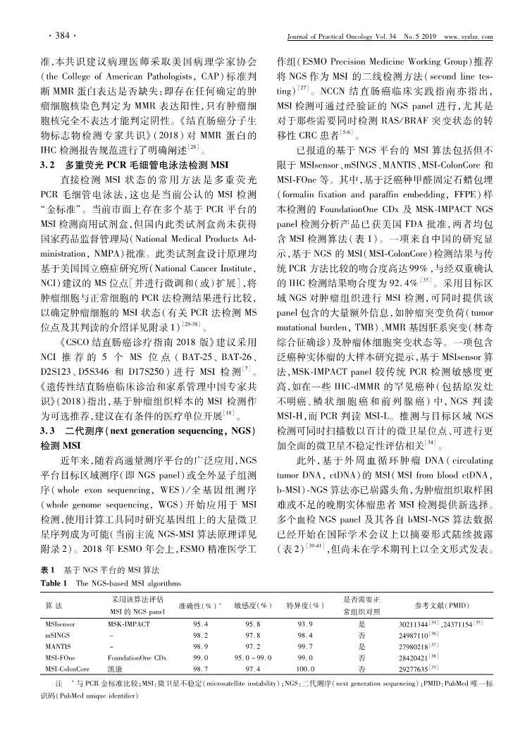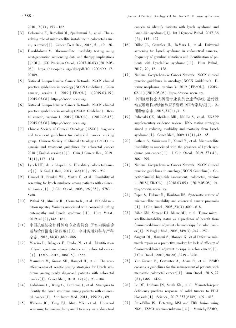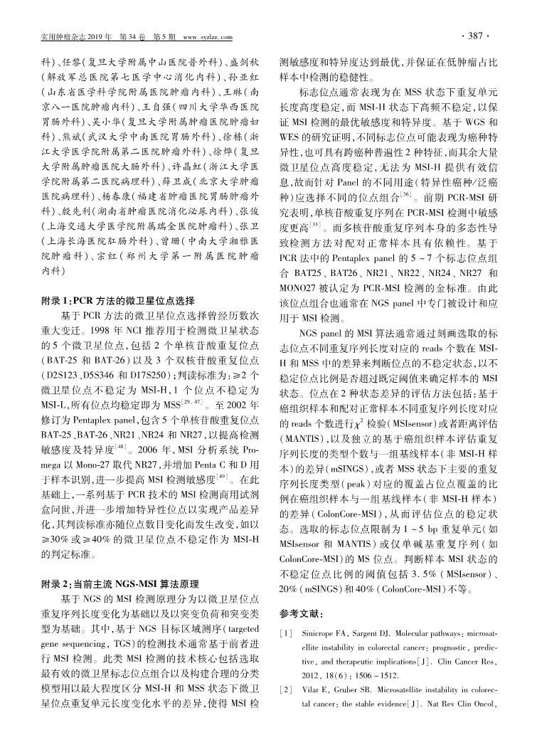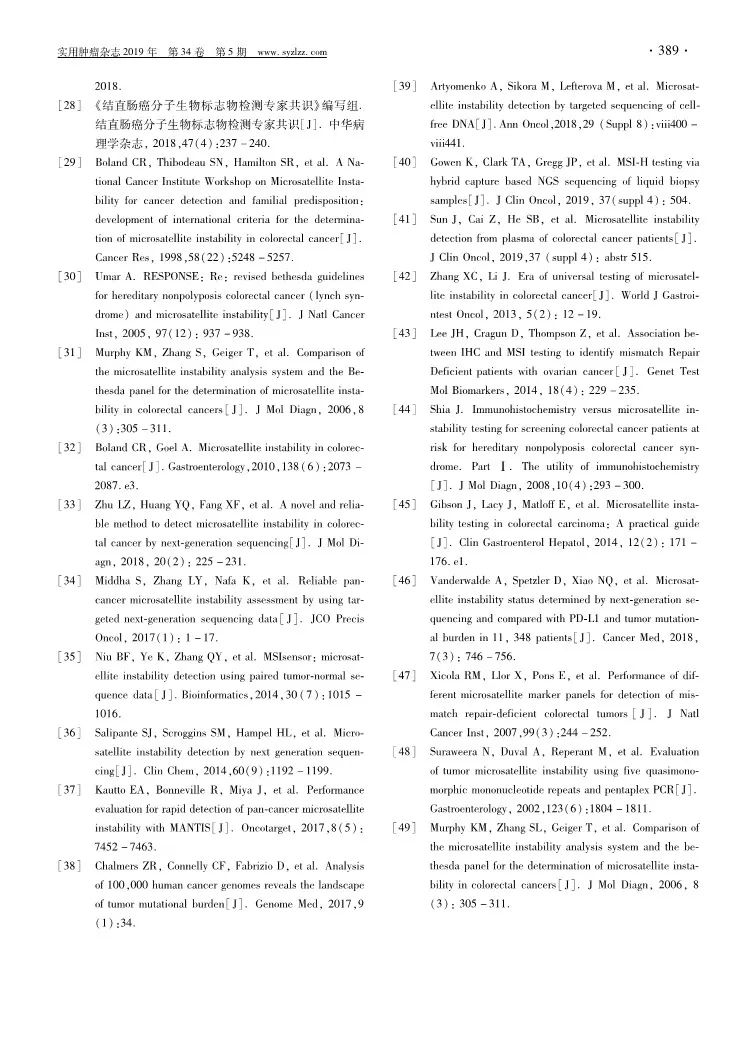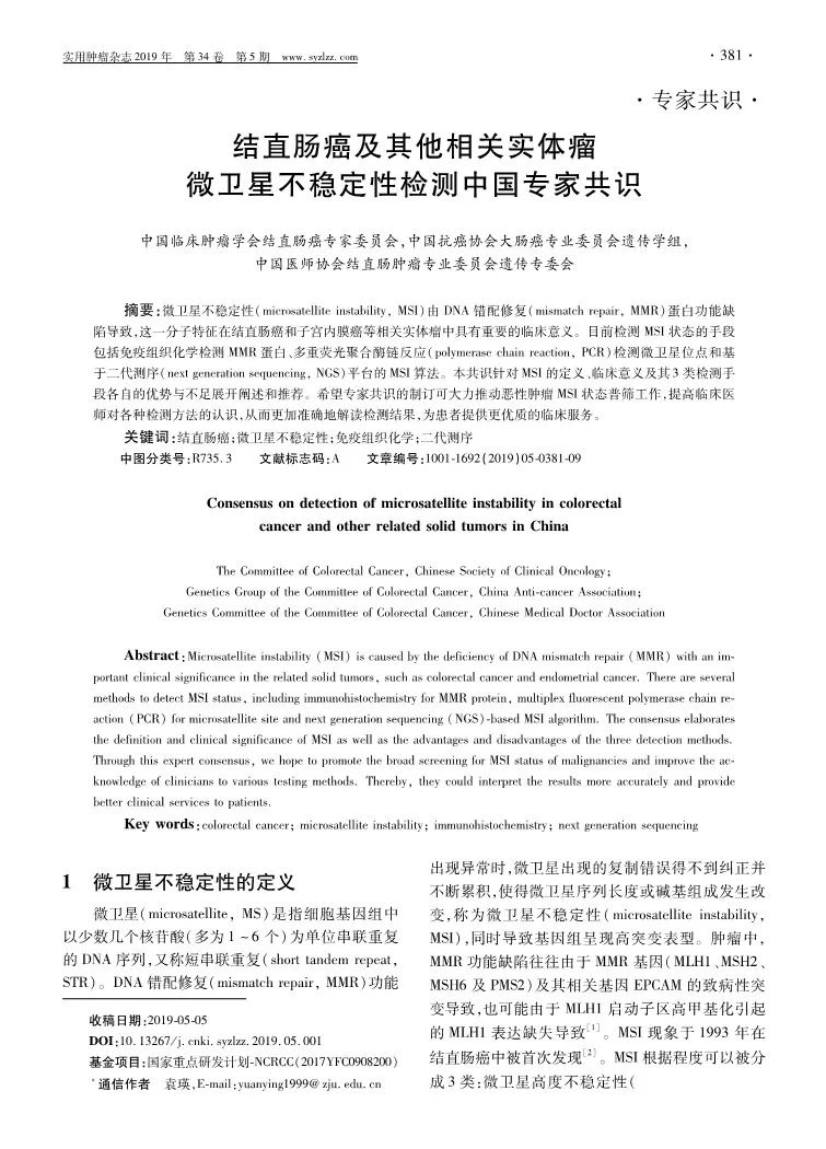 1.结直肠癌及其他相关实体瘤微卫星不稳定性检测中国专家共识.实用肿瘤杂志 2019第34卷 第5期.