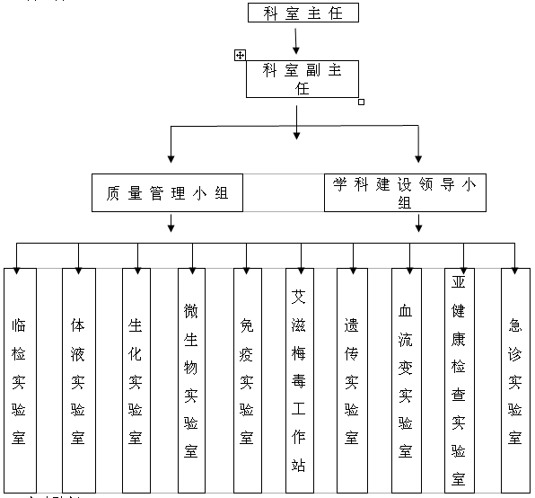 实验诊断科实验室布局合理、设施齐全、安全可靠。具有河北省有突出贡献的中青年专家、河北省新世纪“三三三人才工程”第二和第三层次人才、硕士研究生、本科毕业生、高级职称等检验专业技术人员。配有检验仪器,检验项目近500种,可进行医学专业各个学科各类项目的检测,为临床医疗、教学、科研提供快速准确的检验结果。 1、科室管理