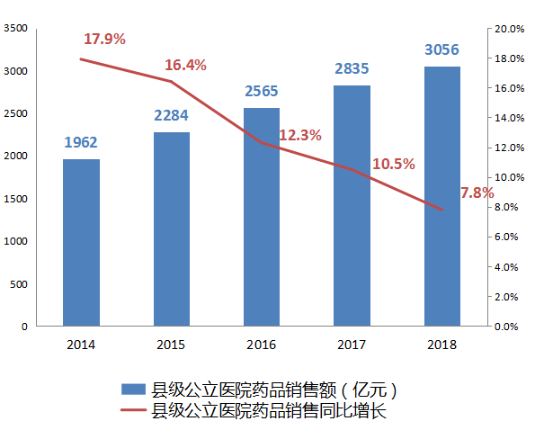 2014-2018县级公立医院药品销售变化 (数据来源:米内网)