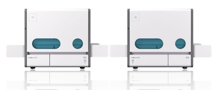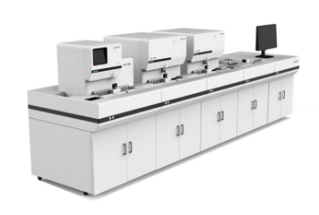 罗氏cobas®6500全自动尿液分析流水线,其包括两台模块化分析设备(cobas U604 全自动尿液分析仪和cobas u701 尿液沉渣分析仪),可进行尿液试纸条检测和数字显微镜成像检查。该系统可检测23项参数,帮助诊断尿路感人、肾病和糖尿病等疾病。