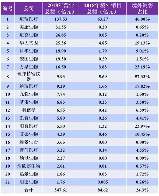 2018年是中国体外诊断行业蓬勃发展的一年,各大IVD企业都在国内市场展示出了良好的发展态势,并且在国产替代的呼声下,进一步发展。我局好奇的是,有没有哪一家IVD企业率先走向国际呢? 于是,我局从全国21家IVD上市企业2018年的财报,统计了他们在2018年的企业营业收入与出口销售数据对比。 △生物医学知识局制表 2018年,21家IVD企业总营收达到了347.61亿元人民币,对外出口额为84.64亿元,占总营收的24.3%。 作为国内医疗器械的代表,迈瑞医疗2018年总营收达到137.53亿元,其中境外销售额为63.27亿元,占比达到46%,迈瑞的产品享誉全球。这样的成绩,是迈瑞一步一步踏实走来的。迈瑞在北美、欧洲、亚洲、非洲、拉美等地区超过30个国家和地区,设有39家境外子公司,形成了庞大的全球化研发、营销以及服务网络,是当之无愧的跨国公司。另外,在2018年,迈瑞还取得了包括传染病在内的一系列化学发光试剂的CE注册证。相信在不久的未来,迈瑞的化学发光产品也会走向世界。 除了迈瑞之外,理邦的境外销售额也达到了5.69亿元,境外销售额甚至超过国内销售额,占比高达57.33%。另外,华大基因、万孚生物同样在国际市场表现由于。其中万孚生物在2008年就进军美国市场,以毒检业务为主,同时发展妊娠和临床业务。经过10年的发展,2018年万孚在美国的销售额达到了2.36亿元,占总营收的14.33%,是其第五大区域市场。 △21家IVD企业之间境外销售贡献占比/生物医学知识局制图 虽然部分IVD企业在国际市场表现优异,但是与国际巨头尚有非常明显的差距。以雅培诊断为例,雅培诊断2018年总营收为74.95亿美元。美国作为全球最大的体外诊断市场,雅培诊断在美国本土的营收为27.17亿美元,国际市场则为47.78亿美元,占比为63.7%。非任何一家国内IVD企业可比。 与迈瑞量级相当的日本希森美康,2019年3月31日结束的一个财年,其总营收为2935亿日元,折合人民币约为177.87亿元,但是在日本本土销售仅占15%。 小 结 一个公司是否涉足国际市场更多的是基于自身实力与市场需求的考量。但是对于中国IVD企业来说,产品走向美国、欧洲、日本等更成熟高端的市场,也是彰显公司产品质量与公司实力的有效手段,改变人们对国产试剂质量不如进口试剂的固有看法。比如新产业就通过美国FDA注册证作为国内宣传的一种方式。 21家企业2018年出口额为84.62亿元,如果将迈瑞去掉,则只有21.35亿元,仅占10%。可见国内IVD企业与国足一样,走向世界,依然任重道远。 |