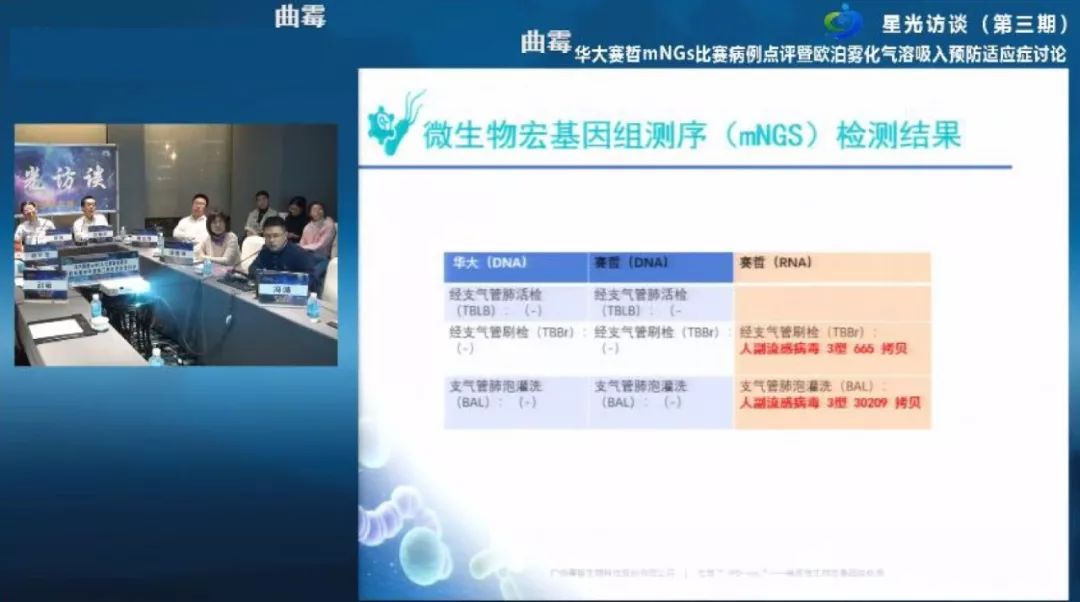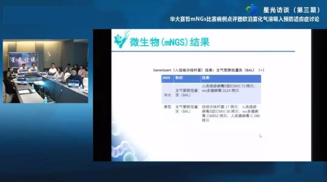《星光访谈》节目由快速现场评价专家委员会主任委员、天津医科大学总医院呼吸与危重症医学科主任冯靖教授主办,每期邀请行业内顶尖专家学者进行学术交流,分享临床实践经验和行业资讯,活动已举办三期,累计观看人次近十几万人,在学术领域极具影响力,创新性地开设细分领域头部企业比赛,为学术界分享优秀技术,除了本次mNGS比赛,主办方已在上年年底成功举办ROSE+mNGS(华大、金域)之间的案例比赛,并针对比赛结果进行点评,引发行业强烈关注与讨论。本次主题:华大VS赛哲ROSE+mNGS比赛病例点评。邀请了各学术领域的大咖,点评病原微生物mNGS领域两家头部企业的测序比赛案例,引导学术风向标,规范行业标准,从技术角度出发,公平公正,客观阐述,本次学术盛会将会在mNGS感染检测领域的发展历史上留下浓厚一笔。 本次活动嘉宾:天津医科大学总医院呼吸与危重症医学科 冯靖教授;无锡市人民医院呼吸与危重症二科主任、无锡市人民医院肺移植科副主任吴波教授;中国医学科学院血液病医院移植科主任医师姜尔烈教授;天津市第一中心医院感染科主任杨文杰教授;中南大学湘雅医院血液科副主任徐雅靖教授;中国医学科学院血液病医院(血液学研究所)造血干细胞移植中心副主任医师庞爱明主任;中日友好医院放射科副主任刘敏教授。本次活动创新性地针对mNGS领域的两家头部企业进行比赛,从学术角度出发,在行业竞争乱局中展露优秀企业的风采,比赛双方代表了领先技术和地位,分别使用illumina与BGI测序平台,受到业界强烈关注,行业学者、专家、企业渴望一睹行业领先企业的风采,在细菌、结核菌、真菌、病毒等病原体检测上双方的优势和独有技术。 赛哲与华大同为首批中国食品药品检定研究院病原微生物组检测参考品协作标定单位,市场占有率为行业前两名,赛哲生物具备九年研发与业务经验,拥有成熟的技术流程标准,严谨的质控体系,可靠稳定的数据分析,为超过300家三甲医院提供感染病例mNGS检测,同时作为首家与美国illumina公司签订了临床诊断产品商业化与供应协议的企业,进行国内独家“仪器+试剂+软件”捆绑注册报证。赛哲生物非常荣幸参与本次学术盛会,我们将会秉承信念,深耕技术,继续为感染患者带来专业、稳定、可靠的病原诊断产品。活动案例集锦——赛哲优异的结核菌、真菌、病毒检测敏感度