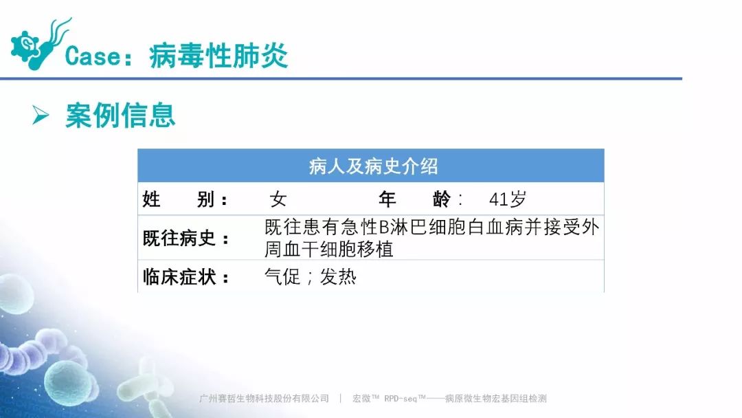 Case:肺部混合感染,赛哲特异性检出结核分枝杆菌(滑动图片) Case:病毒性肺炎,赛哲特异性检出人类腺病毒 B(滑动图片)