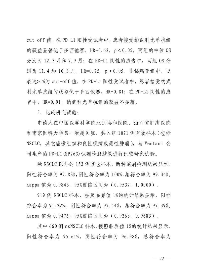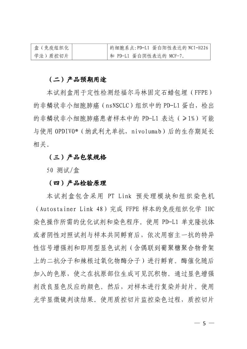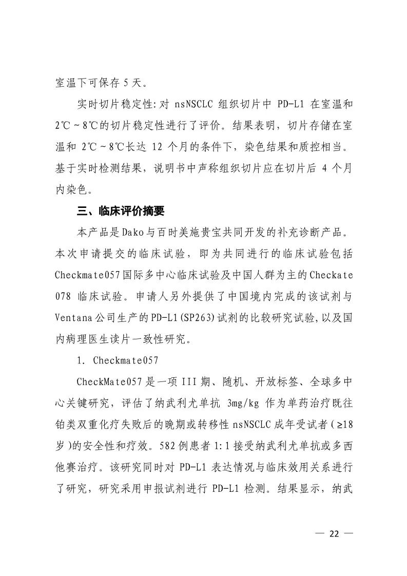 2019年8月30日,国家药品监督管理局(NMPA)批准美国丹科北美有限公司(Dako North America, Inc.)的“PD-L1检测试剂盒(免疫组织化学法)”(克隆号:22C3)上市(代理人:安捷伦科技(中国)有限公司),可辅助鉴别可使用帕博利珠单抗(pembrolizumab)治疗的 非小细胞肺癌(NSCLC )患者。这是中国大陆获批的首个PD-L1检测试剂盒。(中国首个PD-L1检测试剂盒注册技术审评报告和产品说明书) 2019年12月13日,国家药品监督管理局(NMPA)批准美国丹科北美有限公司(Dako North America, Inc.)的“PD-L1检测试剂盒(免疫组织化学法)”(克隆号:28-8)上市(代理人:安捷伦科技(中国)有限公司),可辅助鉴别使用纳武利尤单抗(nivolumab) 治疗的非鳞状非小细胞肺癌(nsNSCLC)患者 。这是继 Dako 22C3 PD-L1检测试剂盒之后,中国大陆获批的第二个PD-L1检测试剂盒。 ▲ CM-057:PD-L1表达量<1%的非鳞状NSCLC患者总生存期 针对目前已获批的两个PD-L1检测试剂盒,小编做了个简单的对比,仅供学习参考: ▲ NMPA批准的两个PD-L1检测试剂盒简单对比 Dako 22-8试剂盒详细的注册技术审评报告和产品说明书: 参考资料: 1.http://www.nmpa.gov.cn/WS04/CL2470/372101.html 2.PD-L1 检测试剂盒(免疫组织化学法)体外诊断试剂产品注册技术审评报告 |