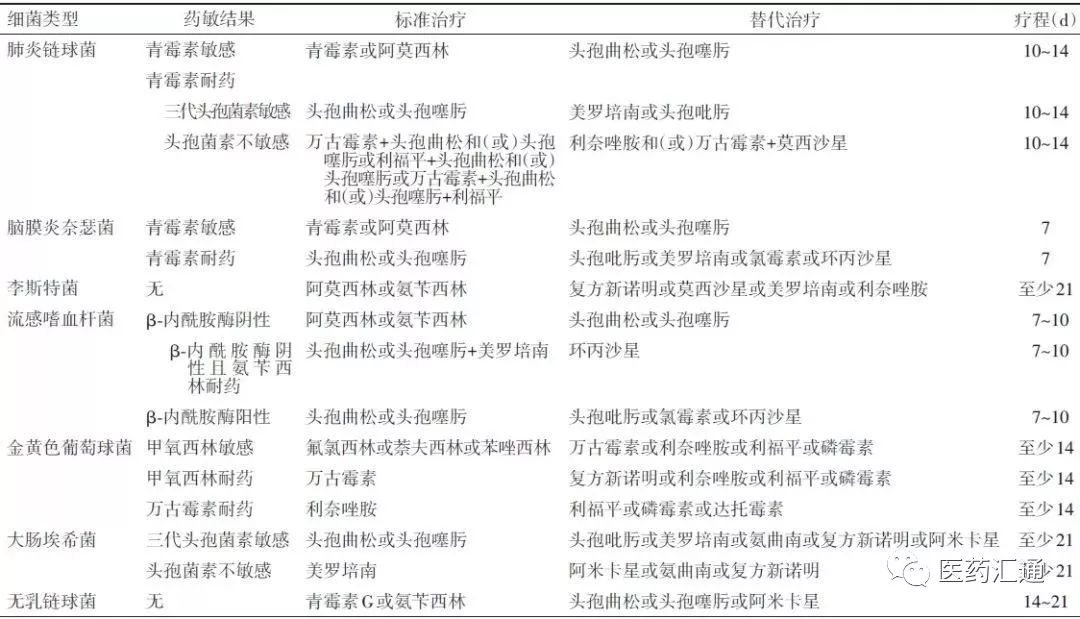诊断流程 对于临床怀疑细菌性脑膜炎患儿,按图1流程诊断评估。 抗菌药物治疗 1. 抗菌药物开始使用的时机 疑似细菌性脑膜炎时,建议入院后1 h内静脉应用足剂量、易透过血脑屏障、具有杀菌作用的抗菌药物。特别强调及时完成血和脑脊液培养;如果有任何原因使腰椎穿刺延迟,包括影像学检查,即使尚未明确诊断,在行血培养后,对疑似患儿也应立即开始经验性抗菌药物治疗。 2. 抗菌药物的初始经验治疗和调整 抗菌药物的选择要从患儿年龄、细菌入颅途径、颅外感染灶、该地区脑膜炎常见细菌谱几个方面综合判断可能的致病细菌,并考虑这些社区获得细菌的耐药情况,作出合理选择,经验性治疗阶段可联合应用抗菌药物。 考虑到我国肺炎链球菌常见,该菌脑膜炎型的青霉素和头孢菌素药敏折点高,脑膜炎型菌株对青霉素和三代头孢的耐药率高,建议将三代头孢菌素加万古霉素作为初始经验治疗方案。 对头孢菌素过敏患儿,经验性治疗阶段需兼顾其他细菌,可选用美罗培南替代治疗。 大肠埃希菌是婴儿期细菌性脑膜炎常见病原菌,耐药现象普遍,关于大肠埃希菌脑膜炎的经验性治疗,尚没有统一的意见。欧美指南推荐使用三代头孢或美罗培南,也有建议三代头孢联合使用氨基糖苷类抗菌药物。 当考虑为高耐药性大肠埃希菌感染时,可选择三代头孢联合美罗培南作为初始治疗方案。 一旦得到脑脊液革兰染色或培养结果,应根据病原体药敏结果结合经验治疗效果调整抗菌药物(表1,表2)。 注:具体用药需要参照药敏结果;部分药物涉及超说明书使用,使用前应充分告知;李斯特菌考虑单药效果不好时,可根据临床需要考虑添加氨基糖苷类抗菌药物;针对大肠埃希菌以及无乳链球菌,可根据临床需要考虑添加氨基糖苷类抗菌药物;鉴于氨基糖苷类抗菌药物的耳毒性等不良反应,应谨慎使用,尤其是4岁以下的儿童,更应严格掌握适应证,密切监测不良反应,并根据现有的医疗规章制度予以充分告知;利福平、复方新诺明和磷霉素不建议作为单药治疗;氯霉素、喹诺酮类可作为耐药性肺炎链球菌、脑膜炎球菌、流感嗜血杆菌等病原菌的替代治疗方案,但鉴于其不良反应以及超说明书应用等情况,应尽量避免使用;如肺炎链球菌对头孢曲松或头孢噻肟高耐药,即最低抑菌浓度≥4.0 mg/L,可考虑加利福平;对耐甲氧西林的葡萄球菌脑膜炎,选择万古霉素时,可考虑加用利福平。 表2 3. 抗菌药物的疗程 对所有细菌性脑膜炎患儿均应坚持足疗程的抗菌药物治疗,推荐疗程见表1。当致病菌不明确时,结合临床疗效建议至少治疗2周。 足疗程治疗后效果不满意者,应分析原因,注意排查其他部位病灶及并发症,视情况决定是否延长抗菌药物疗程或调整治疗方案。 4. 停药指征 目前细菌性脑膜炎没有明确的停药指征,现有的停药建议大多基于临床经验。根据国内外研究现状结合我国实际情况建议,按标准疗程完成治疗并满足以下条件可停用抗菌药物:症状体征消失、体温正常1周以上,脑脊液压力、细胞数低于20个且均为单个核细胞、蛋白和糖正常,脑脊液培养阴性,没有神经系统并发症。有研究表明,标准抗菌药物疗程结束后脑脊液常规、生化检查轻度异常很常见,与预后和复发不成正比。因此,建议无并发症患者,如临床及其他实验室指标均达到停药指征,脑脊液蛋白仍高(常见于肺炎链球菌感染)但含量低于1 g/L和(或)脑脊液糖仍低(常见于革兰阴性菌如大肠埃希菌感染)但含量高于2.0 mmol/L,可停药观察,仍需注意密切随访有无复发。 以上内容摘自:中华医学会儿科学分会神经学组.儿童社区获得性细菌性脑膜炎诊断与治疗专家共识[J] .中华儿科杂志,2019,57(8):584-591. |