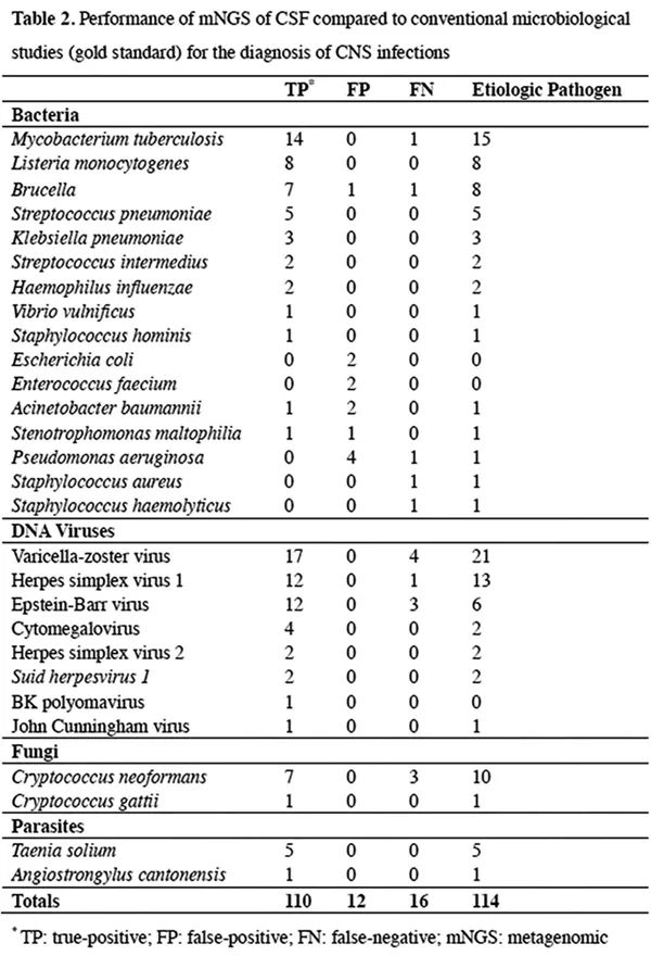 S.Y. Fan, X.J. Wang, Y.F. Hu, et al. Metagenomic Next-generation Sequencing of Cerebrospinal Fluid for the Diagnosis of Central Nervous System Infections: A Multicentre Prospective Study. bioRxiv, 658047.