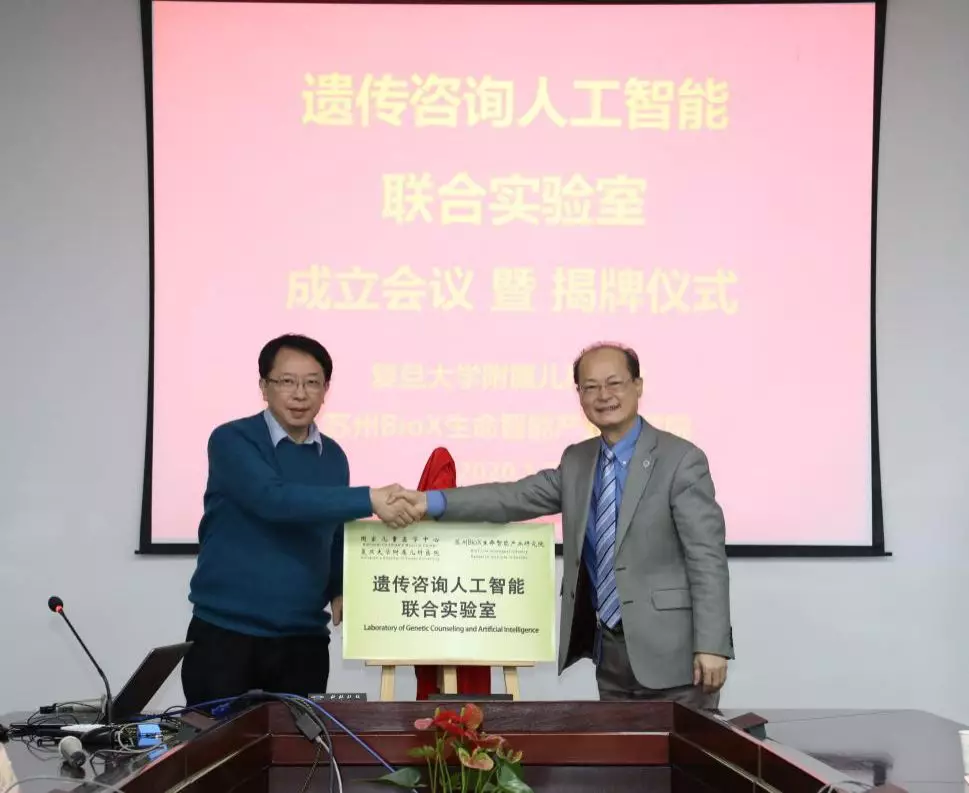 2020年1月7日,由复旦大学附属儿科医院(国家儿童医学中心)与苏州BioX生命智能产业研究院合作的“遗传咨询人工智能联合实验室”成立仪式正式举行。中国科学院贺林院士和复旦大学附属儿科医院黄国英院长共同为联合实验室揭牌,旨在推进人工智能技术在儿童遗传病的辅助诊断及遗传咨询领域的科技创新,打造世界顶尖的人工智能与遗传相结合的科研平台。
