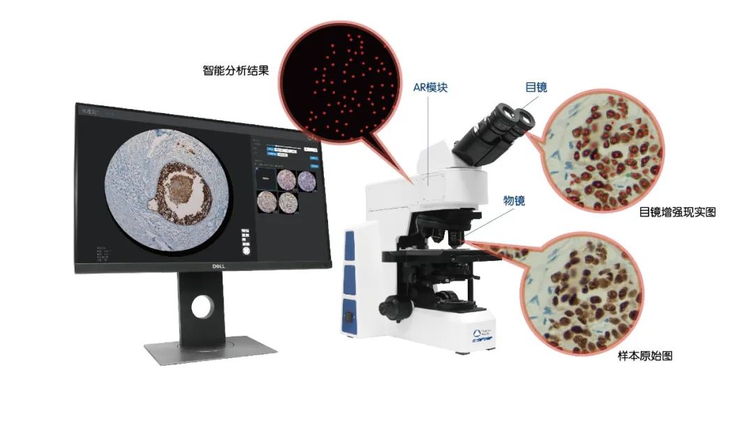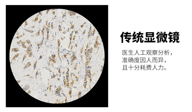 依靠病理医生诊断还面临着一个重要的现实问题:病理医生严重短缺。据统计,中国目前仅有 1.5 万名病理医生,缺口近 10 万,供需极不平衡,而新病理医生的培养又面临着时间周期长,年轻一代学习意愿不强等问题。 智能显微镜优势:节约医生的时间精力,提升读片精准度与一致性 近年来随着机器学习与大数据技术的发展,以计算机视觉为首的 AI 技术已展现出了在病理诊断应用上的巨大潜力。若使用 AI 辅助 IHC 结果判读,可以: