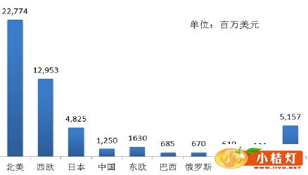 1、体外诊断试剂行业概况 根据Kalorama Information于2012年7月出具的第8版体外诊断试剂行业市场报告 1,2011年体外诊断试剂的全球规模为508.54亿美元,预计2016年将达到638.40亿美元,年均增长5%。过去几年诊断试剂消费量最大的地区是北美和欧盟,年均增长率最快的国家和地区是拉美、中国及印度。其中2011年中国体外诊断试剂销售收入为12.50亿美元(约合79亿元人民币),仅占全球市场规模的2.46%,预计未来5年的年复合增长率为17%,为全球增长最快的国家(地区)之一,呈现基数小、增速快的特征。