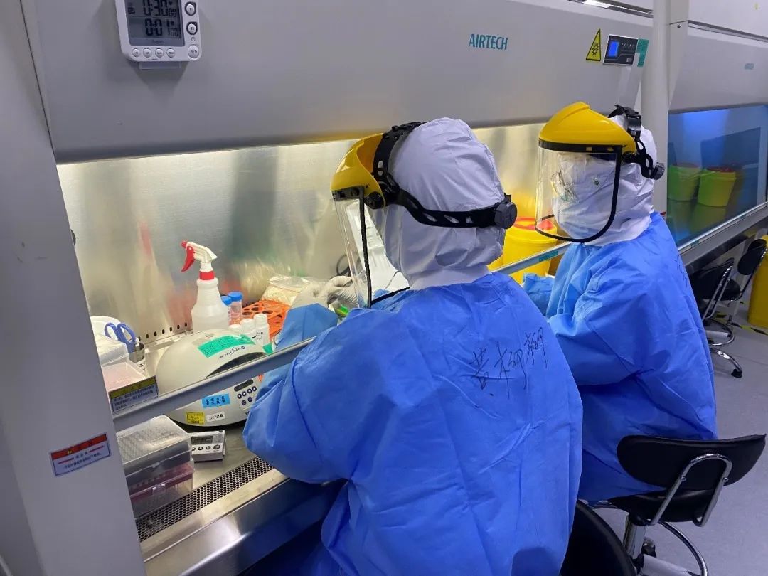 药明奥测qixia医检所检验人员正在提取新冠病毒核酸
