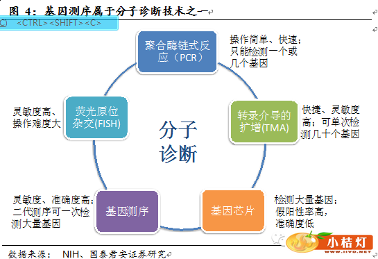 达安基因——参股17.14%的爱健生物与美国Life Technologies公司合作,已能独立开展基于二代测序的无创产前基因检测、单基因病检测、乳腺癌基因检测、肿瘤个体化用药基因检测、个人全基因组检测等服务,并与部分医院保持紧密合作,拥有一定技术和渠道先发优势,但综合配套管理能否跟进需要进一步观察。考虑公司是与技术相对成熟的外企合作,且达安自身的诊断业务已有医院渠道和自有独立医学实验室,未来或有业务协同的效应,有望在快速增长的测序市场中获得一定的份额。
